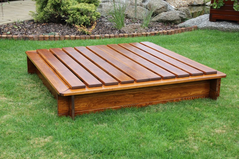 Povrchová úprava (nátěr je proveden lazurou ADLER Lignovit lasur) a odstín nátěru dle nabídky. (Na obrázku je pískoviště v povrchové úpravě OŘECH)