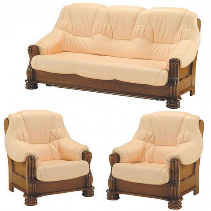 Luxusní pohovka je vyrobena z pravé hovězí kůže. Kostra je vyrobena z tvrdého dubového dřeva s pevnou konstrukcí. Na bocích této pohovky je ručně vyřezaný motiv. Výplň sedáků je vysoce kvalitní polyuretanová pěna s pružinou bonel. Pohovka je rozkládací pro příležitostní spaní, spací plocha 140x190 cm. Možnost výběru barvy kůže. Vámi zvolenou variantu barvy kůže i dřeva (dle přiloženého vzorníku) uveďte do objednávky.