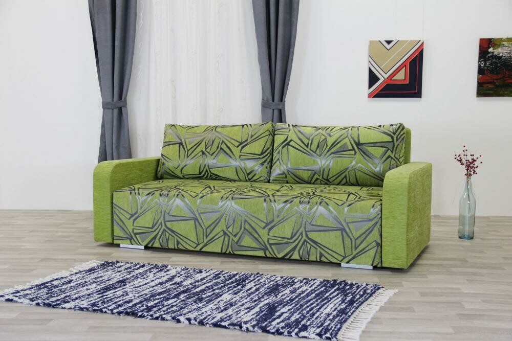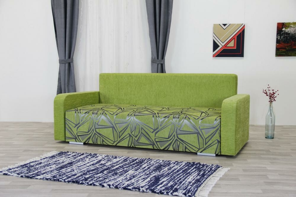 Celočalouněná rozkládací pohovka Andrea s úložným prostorem a dvěma opěradlovými polštáři, vhodná i pro každodenní spaní. Kostra pohovky je tvořena kombinací masivu a velkoplošných materiálů (DTD). Sedací a lehací plochy tvoří pružinové jádro, polštáře jsou plněny PUR drtí. Pohovka včetně područek. Rozkladem vznikne spací plocha 195x170 cm.