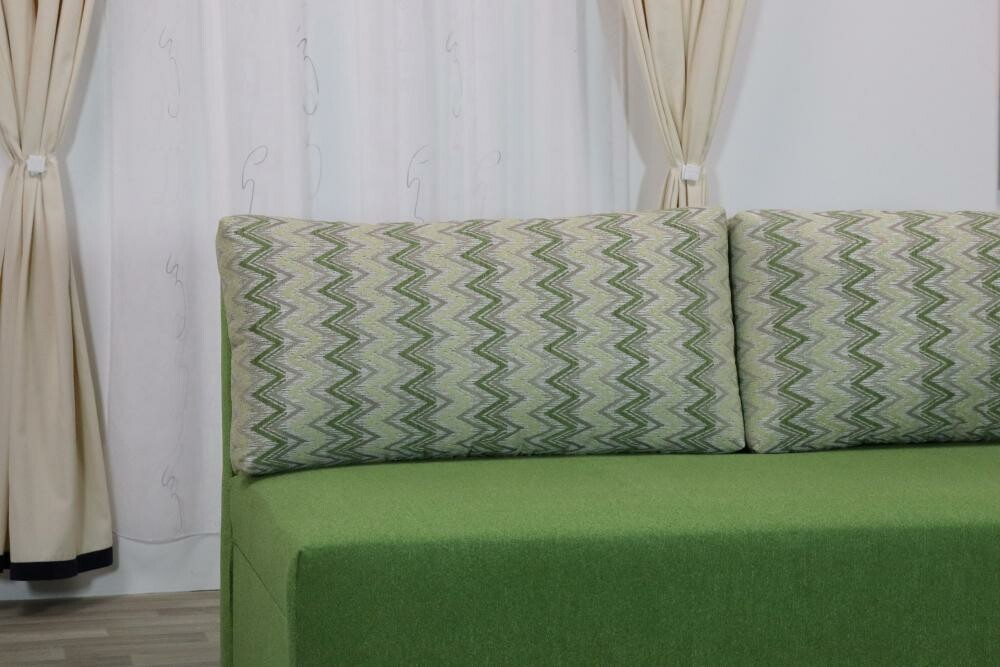 Celočalouněná rozkládací pohovka Andrea s úložným prostorem a dvěma opěradlovými polštáři, vhodná i pro každodenní spaní. Kostra pohovky je tvořena kombinací masivu a velkoplošných materiálů (DTD). Sedací a lehací plochy tvoří pružinové jádro, polštáře jsou plněny PUR drtí. Rozkladem vznikne spací plocha 195x170 cm.