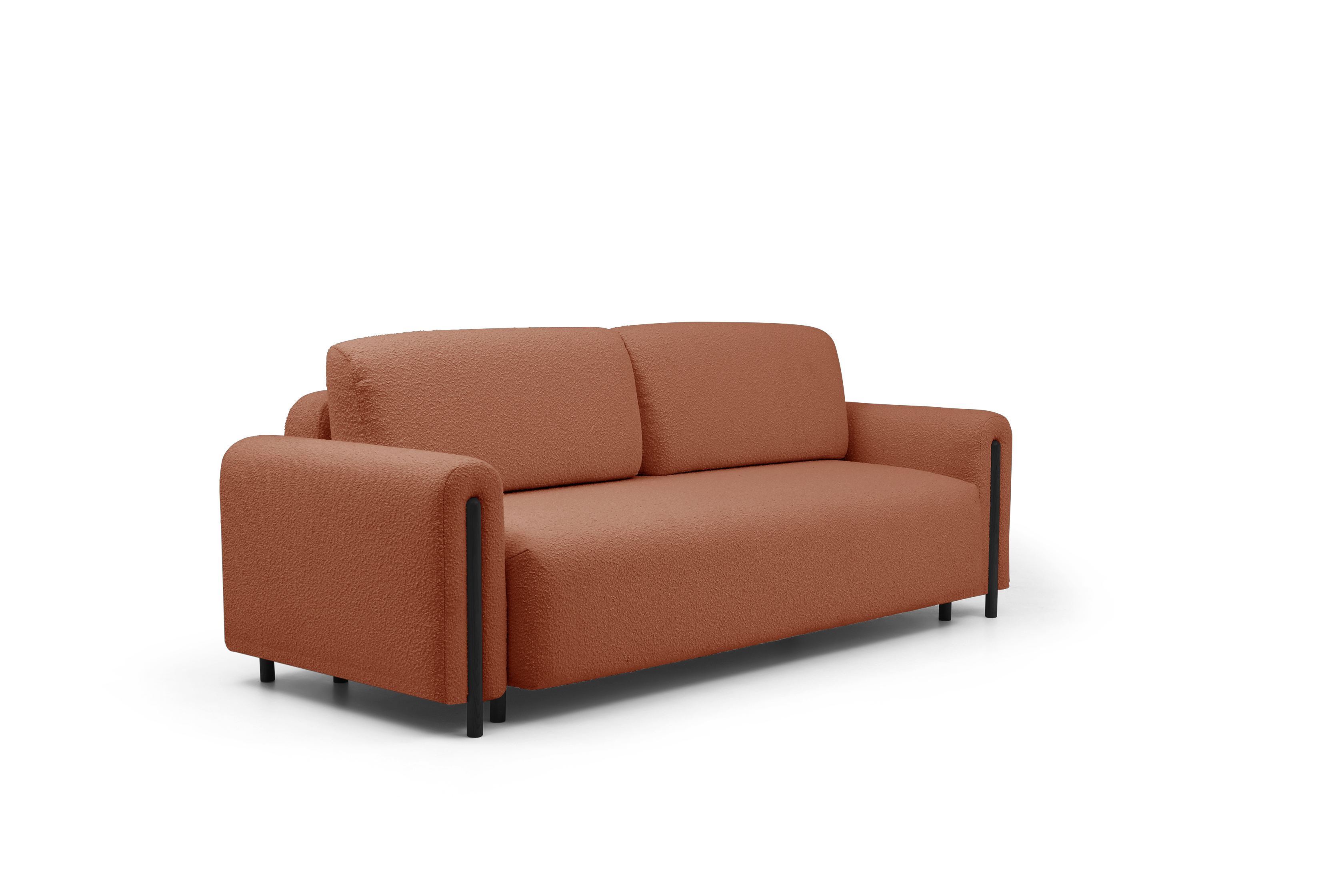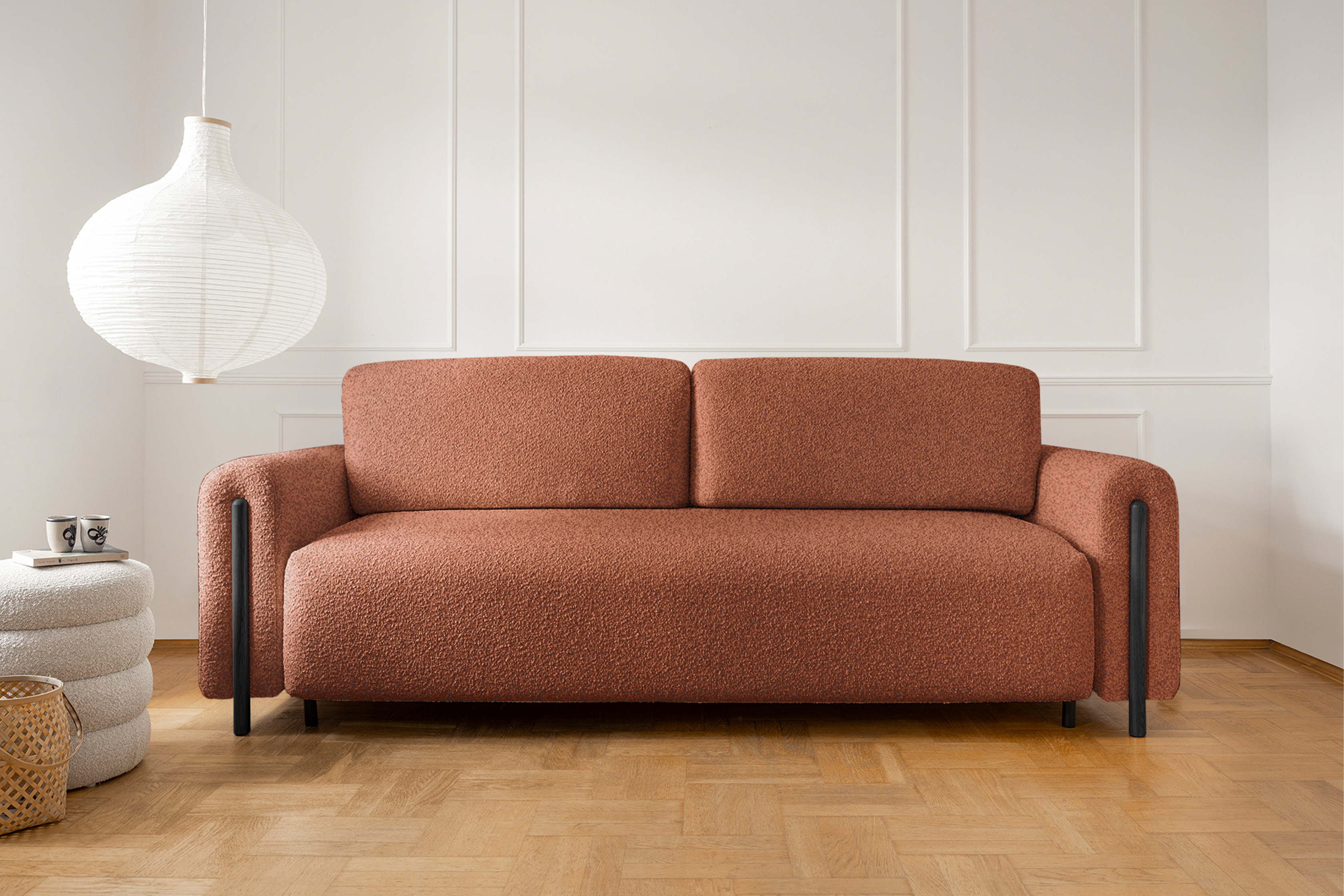 Pohovka Arcadova II v provedení boucle tkanině v dezénu Jaffray 30 - látka příjemná na dotek, vyrobená z nejkvalitnějších surovin z důrazem na detail. Kostru pohovky tvoří masivní dřevo a dřevotříska. Vlnité pružiny faliste, kvalitní HR pěna a pružná PUR pěna zaručí pružnost a dokonalý komfort sedací plochy, pod kterou se nachází úložný prostor. Záda jsou čalouněná, takže ji můžete umístit do prostoru. Pohovka stojí na 12 cm vysokých dřevěných nožkách. Díky rozkládací funkci vznikne spací plocha 146X200 cm na příležitosné spaní. Pohovku zdobí černé dřevěné prvky.