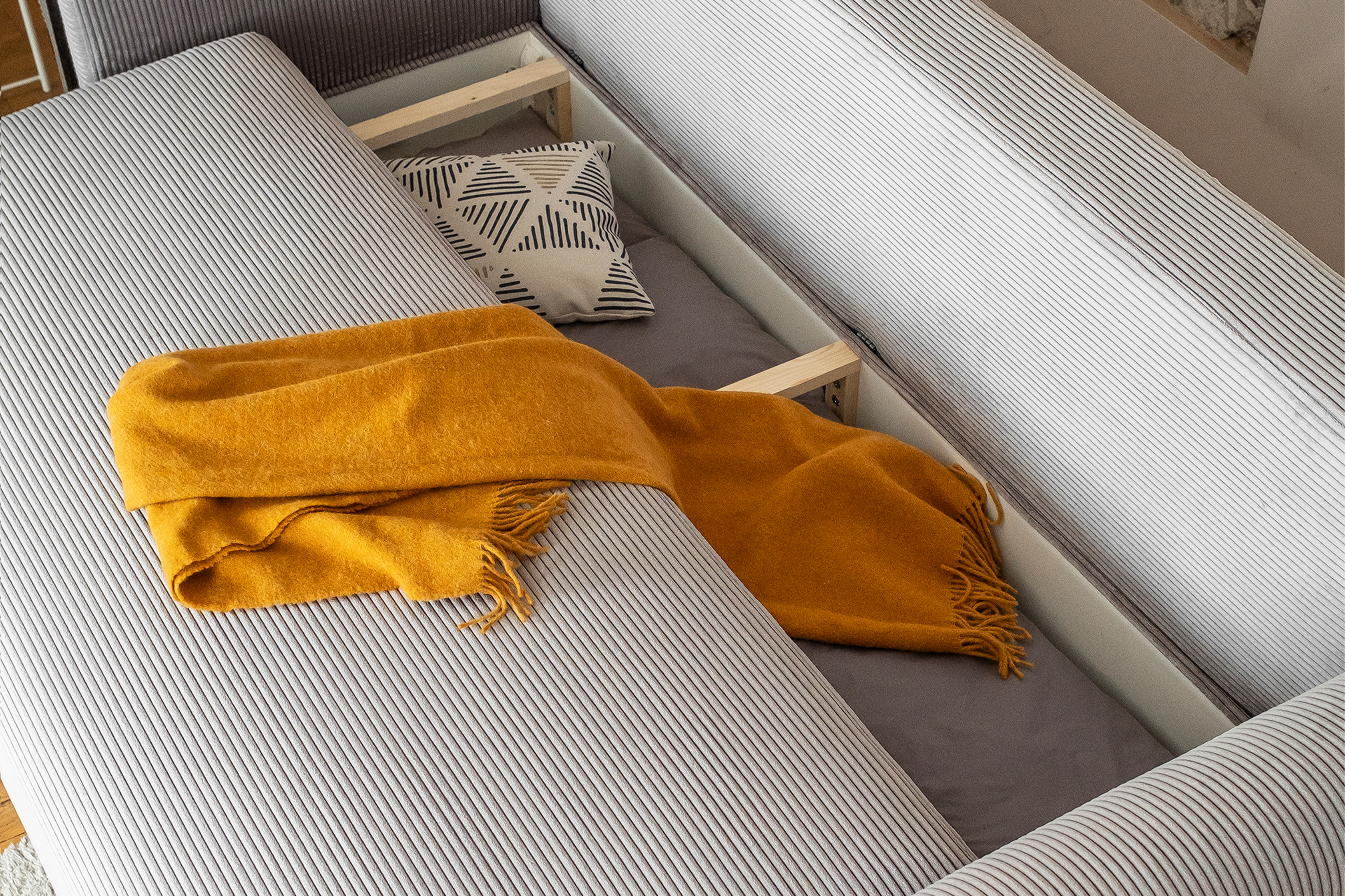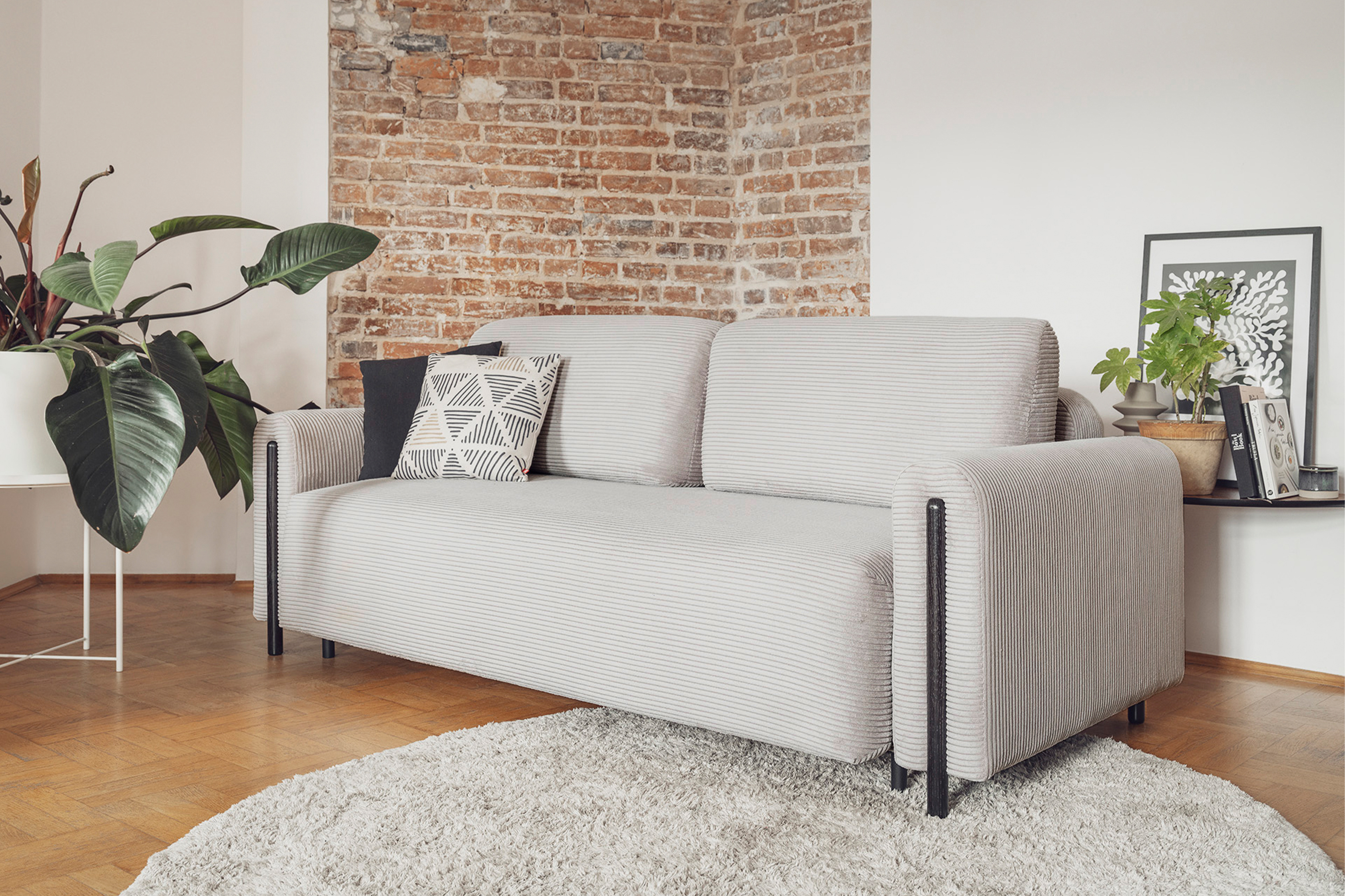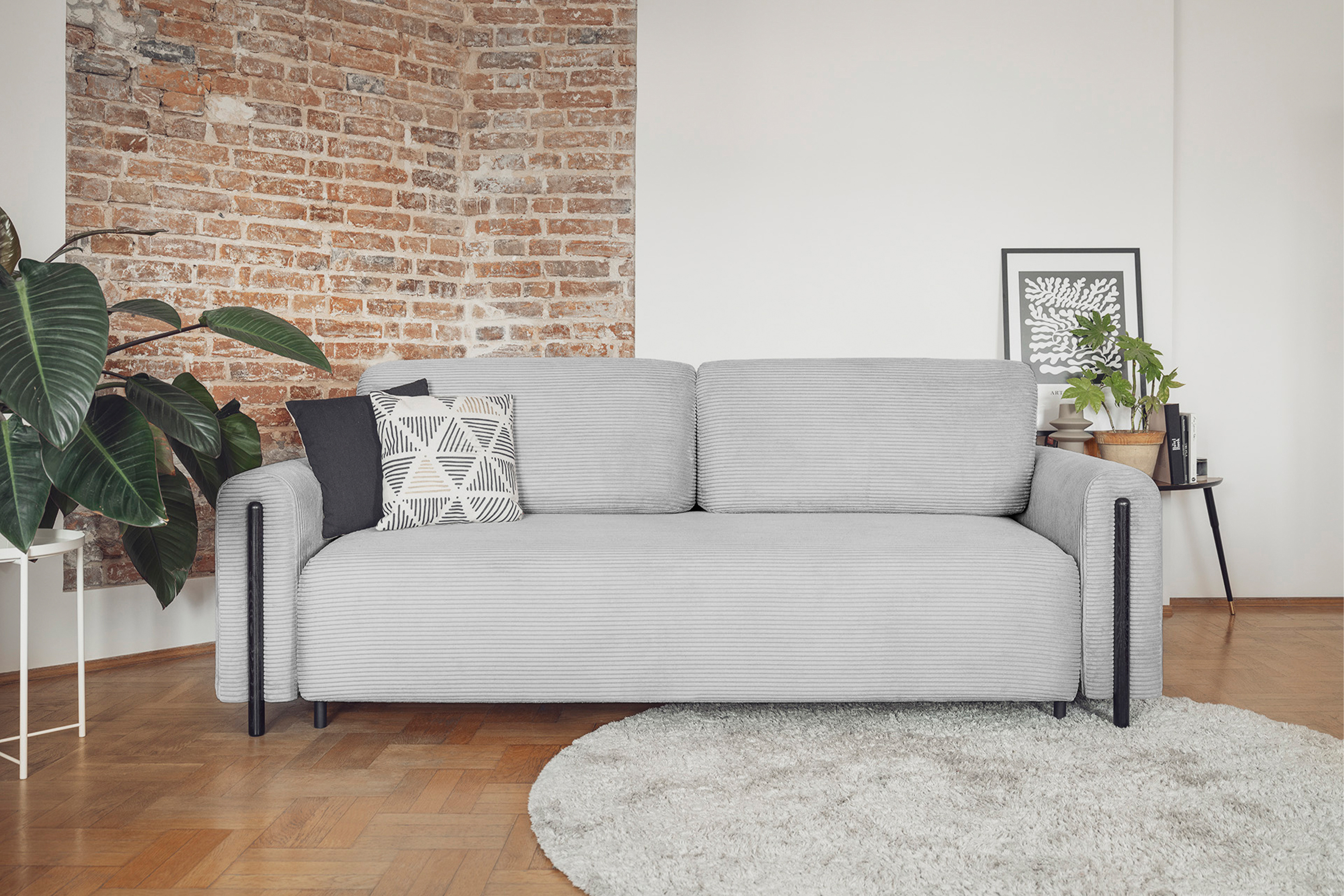 Pohovka Arcadova II v provedení boucle tkanině v dezénu Jarell 03 - látka příjemná na dotek, vyrobená z nejkvalitnějších surovin z důrazem na detail. Kostru pohovky tvoří masivní dřevo a dřevotříska. Vlnité pružiny faliste, kvalitní HR pěna a pružná PUR pěna zaručí pružnost a dokonalý komfort sedací plochy, pod kterou se nachází úložný prostor. Záda jsou čalouněná, takže ji můžete umístit do prostoru. Pohovka stojí na 12 cm vysokých dřevěných nožkách. Díky rozkládací funkci vznikne spací plocha 146X200 cm na příležitosné spaní. Pohovku zdobí černé dřevěné prvky.