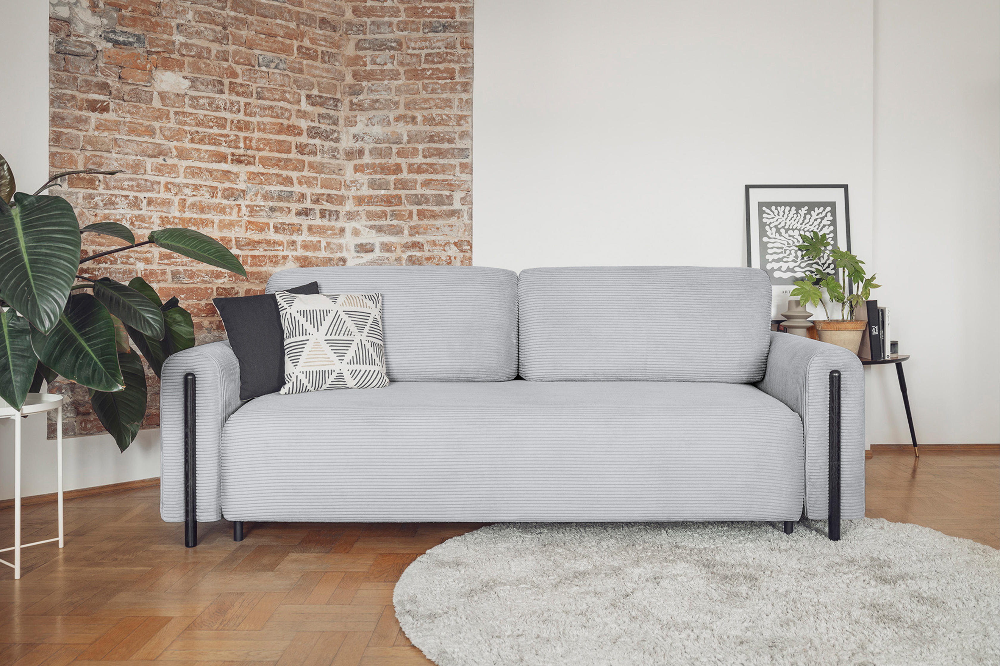 Pohovka Arcadova II v provedení boucle tkanině v dezénu Jarell 04 - látka příjemná na dotek, vyrobená z nejkvalitnějších surovin z důrazem na detail. Kostru pohovky tvoří masivní dřevo a dřevotříska. Vlnité pružiny faliste, kvalitní HR pěna a pružná PUR pěna zaručí pružnost a dokonalý komfort sedací plochy, pod kterou se nachází úložný prostor. Záda jsou čalouněná, takže ji můžete umístit do prostoru. Pohovka stojí na 12 cm vysokých dřevěných nožkách. Díky rozkládací funkci vznikne spací plocha 146X200 cm na příležitosné spaní. Pohovku zdobí černé dřevěné prvky.