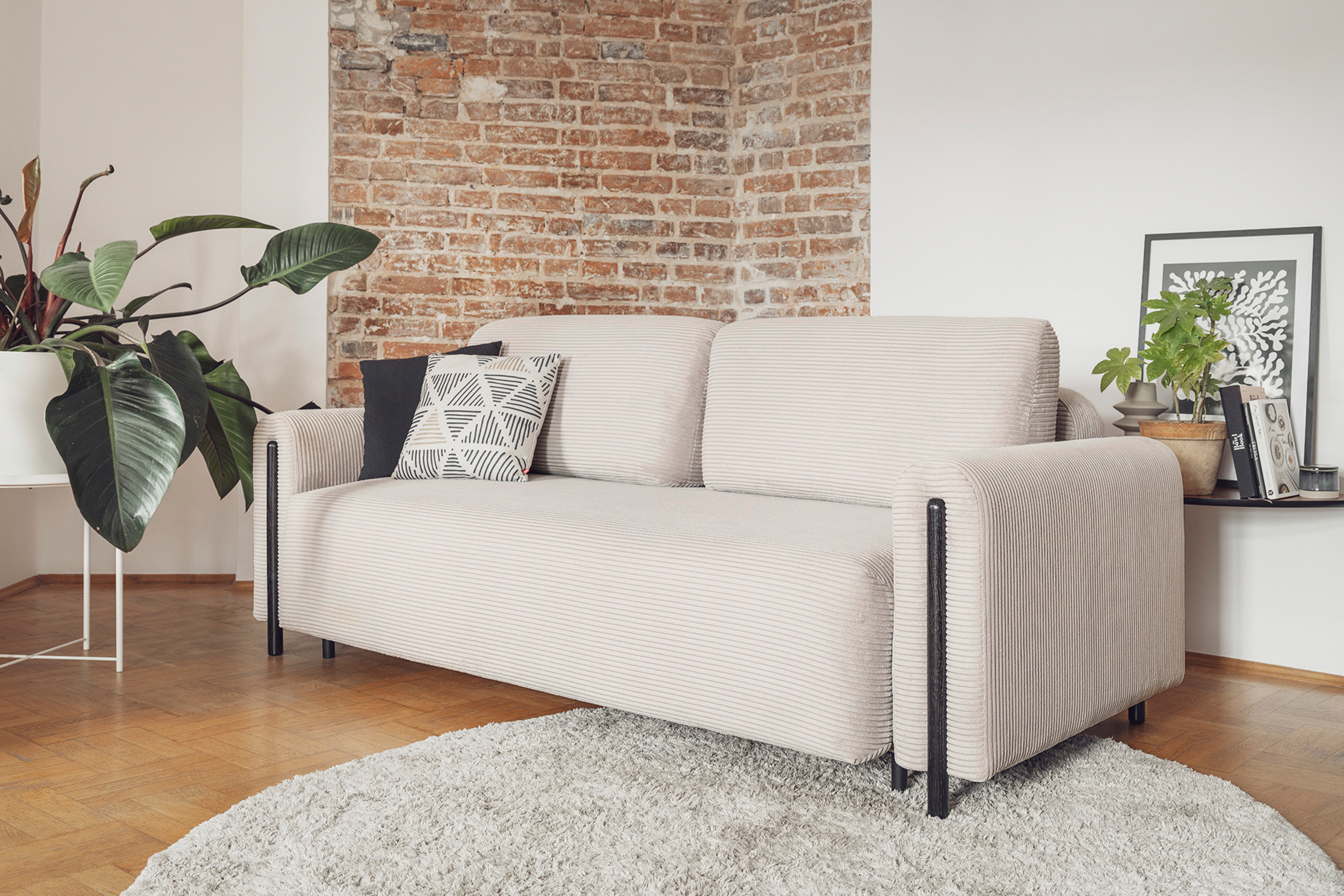 Pohovka Arcadova II v provedení boucle tkanině v dezénu Jarell 18 - látka příjemná na dotek, vyrobená z nejkvalitnějších surovin z důrazem na detail. Kostru pohovky tvoří masivní dřevo a dřevotříska. Vlnité pružiny faliste, kvalitní HR pěna a pružná PUR pěna zaručí pružnost a dokonalý komfort sedací plochy, pod kterou se nachází úložný prostor. Záda jsou čalouněná, takže ji můžete umístit do prostoru. Pohovka stojí na 12 cm vysokých dřevěných nožkách. Díky rozkládací funkci vznikne spací plocha 146X200 cm na příležitosné spaní. Pohovku zdobí černé dřevěné prvky.