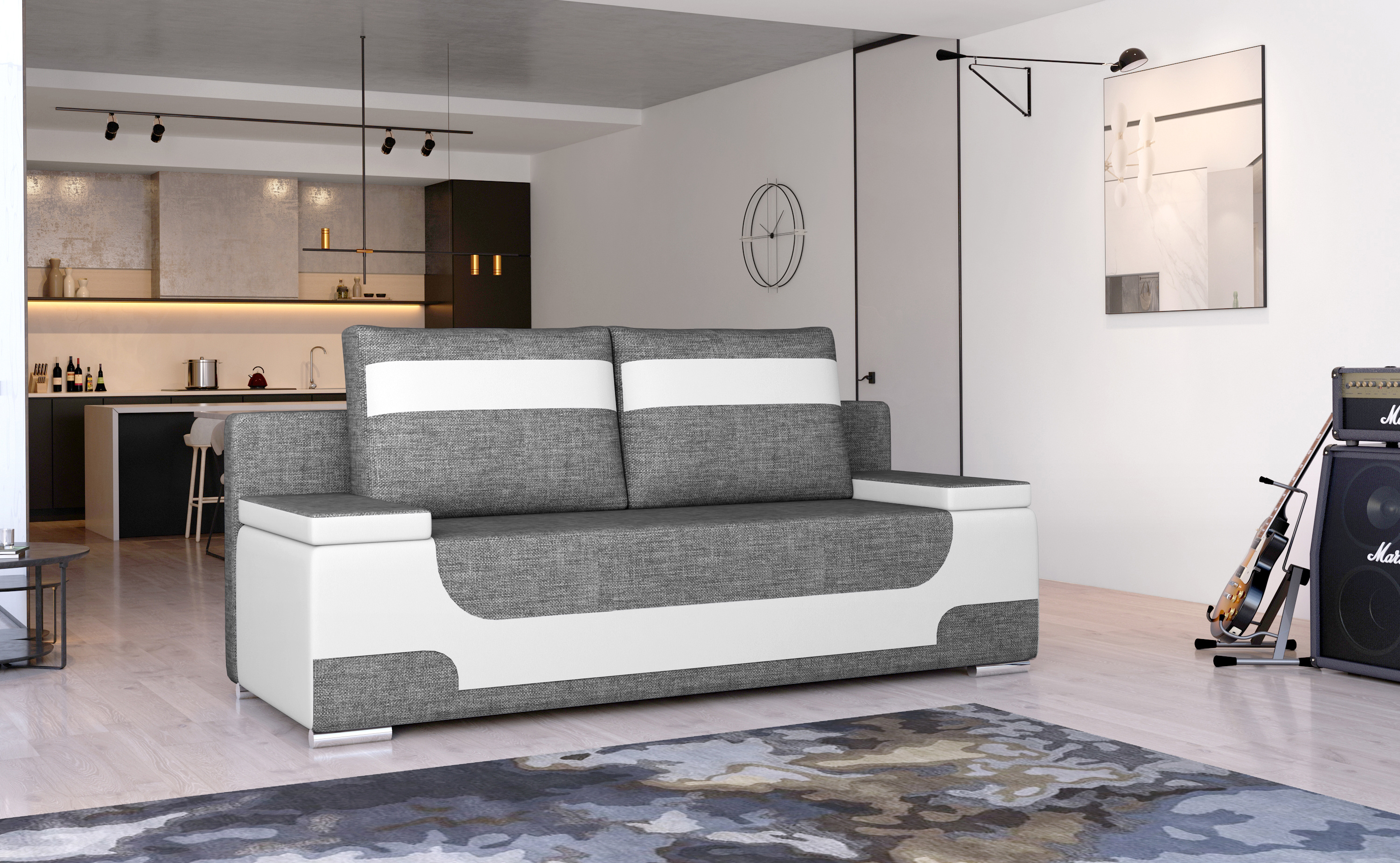 Pohovka AREA v barevné kombinaci Sawana 05/ eko kůže Soft 17. Díky použití bonellu a pěny T25 je sedák extrémně pružný a měkký. Rozkladem vznikne spací plocha 140x200. Pohovka disponuje úložným prostorem.