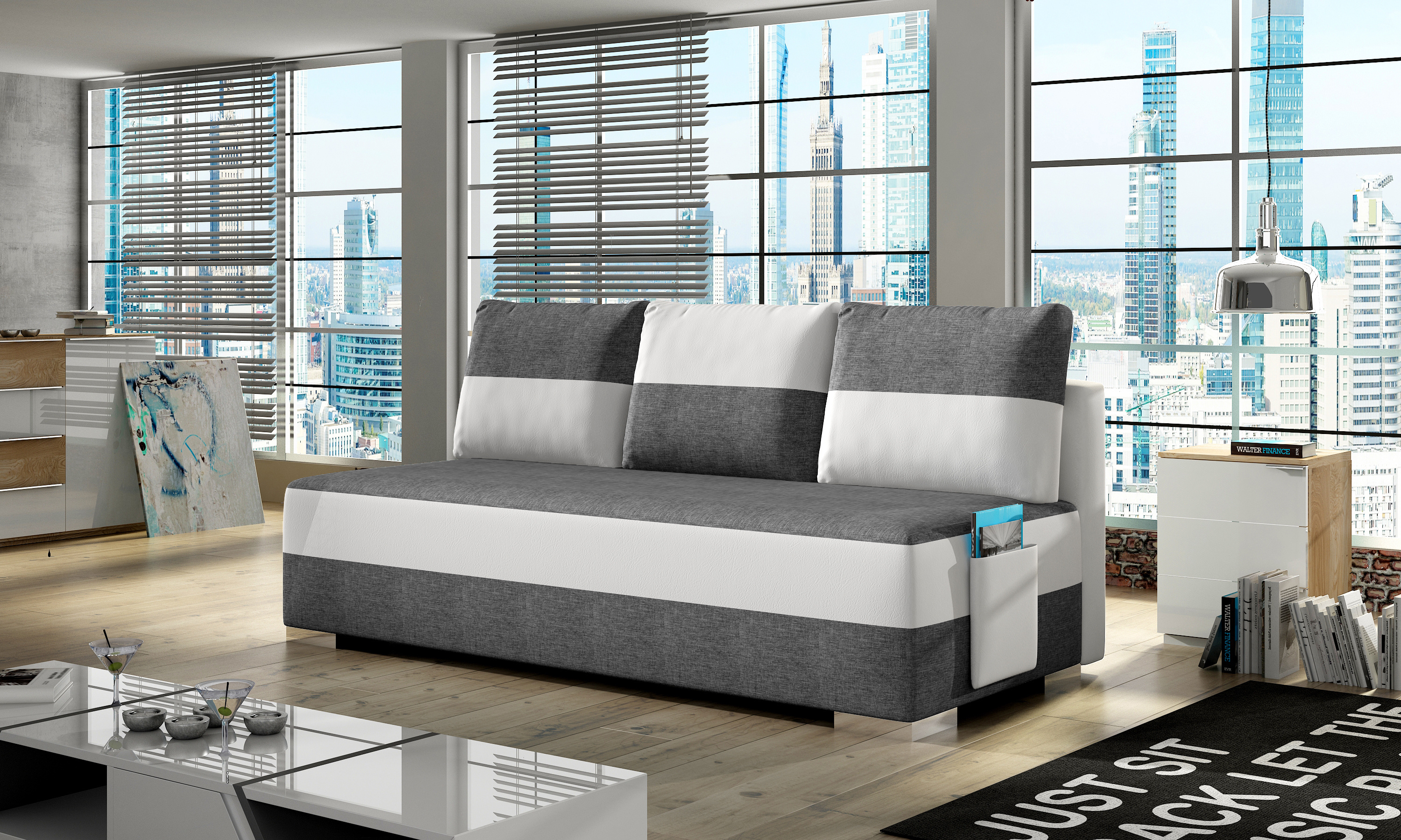 Pohovka Atila v provedené látka Sawana 21/ eko kůže Soft 17 má sedáky vyplněné pružinami Bonnell a pěnou T25. Rozkladem vznikne spací plocha 200x140 cm. Prostorný úložný prostor a bočnmí kapsa , umístěná na jedné straně pohovky. Čalouněné je příjemné na dotek a odolné vůči skvrnám.