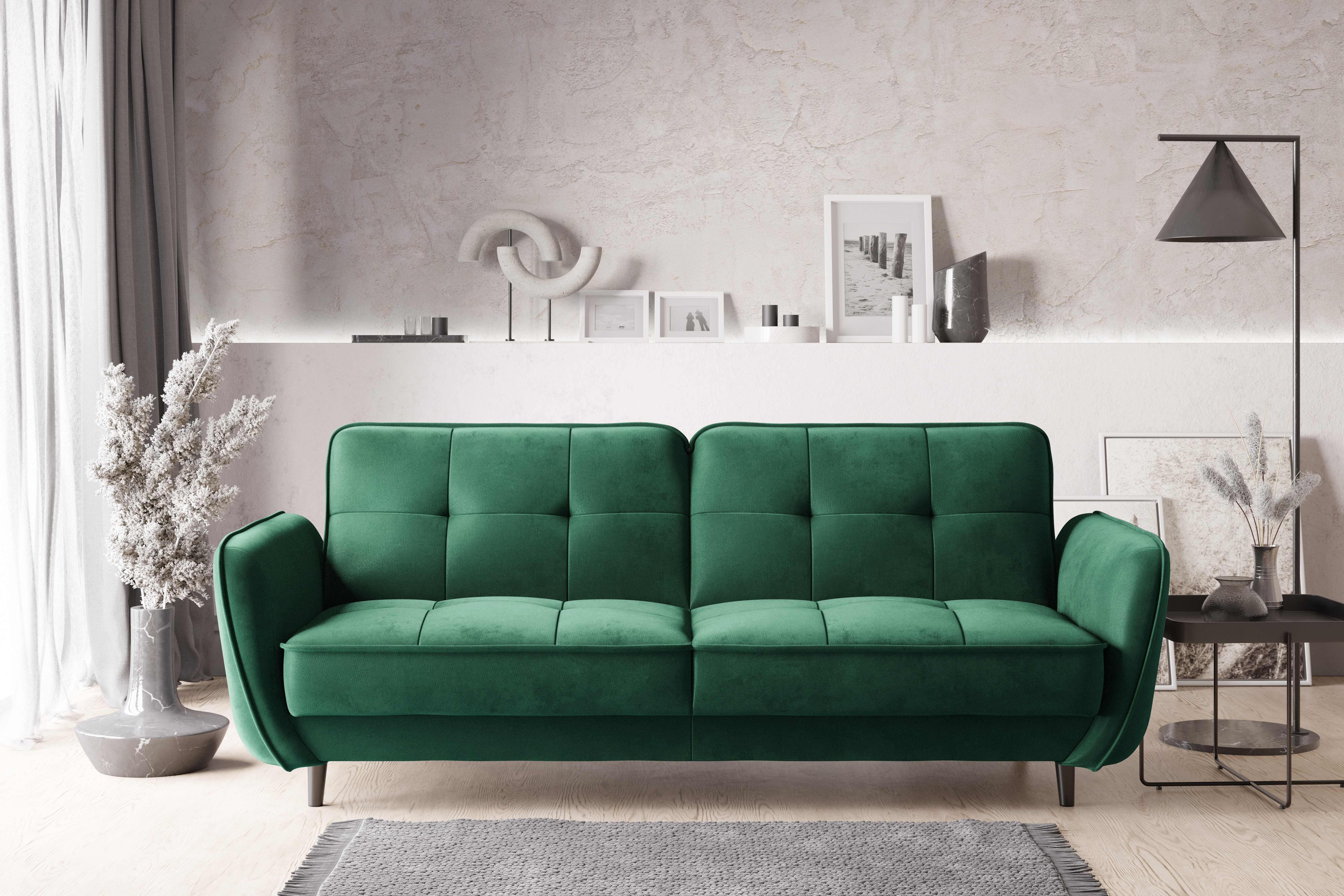 Rozkládací pohovka Bellis v dezénu Lukso 35 s výplní sedáku tvořenou HR pěnou a taštičkovými pružinami. Potahová látka Lukso: pevná látka, snadná údržba, nevybledne, bez stínového efektu po přejetí rukou. Ozdobné vyšívání sedáků a opěrek. Pomocí rozkladu clik-clak vznikne lehací plocha 110x190 cm. Pod sedákem se nachází úložný prostor. Pohovka má dřevěné nožky o výšce 11 cm. K pohovce nabízíme taburet Bellis.