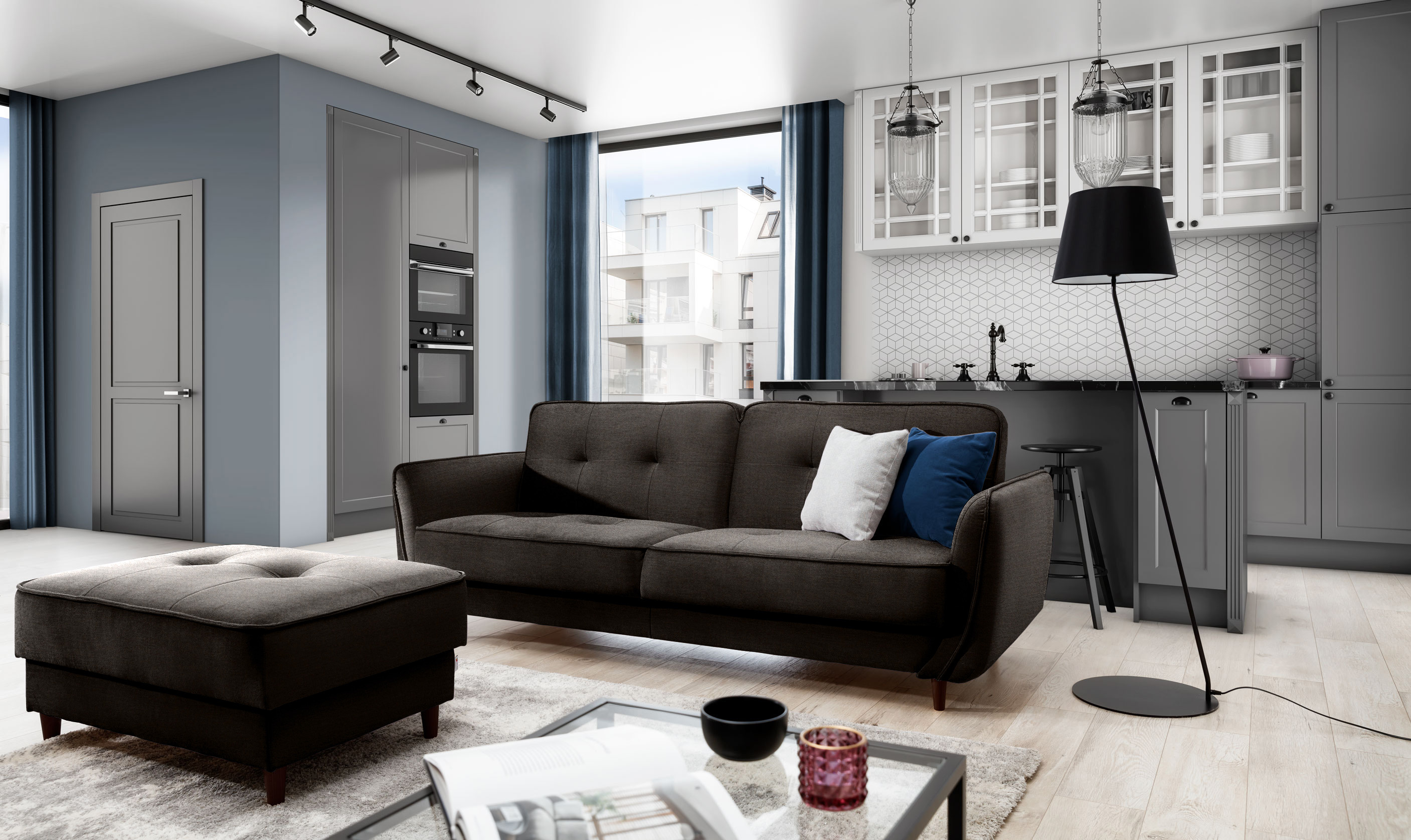 Rozkládací pohovka Bellis v dezénu Nube 22 s výplní sedáku tvořenou HR pěnou a taštičkovými pružinami. Potahová látka Nube: odolná a pevná, hladký povrch s odleskem, voděodolná. Ozdobné vyšívání sedáků a opěrek. Pomocí rozkladu clik-clak vznikne lehací plocha 110x190 cm. Pod sedákem se nachází úložný prostor. Pohovka má dřevěné nožky o výšce 11 cm. K pohovce doporučujeme taburet Bellis.