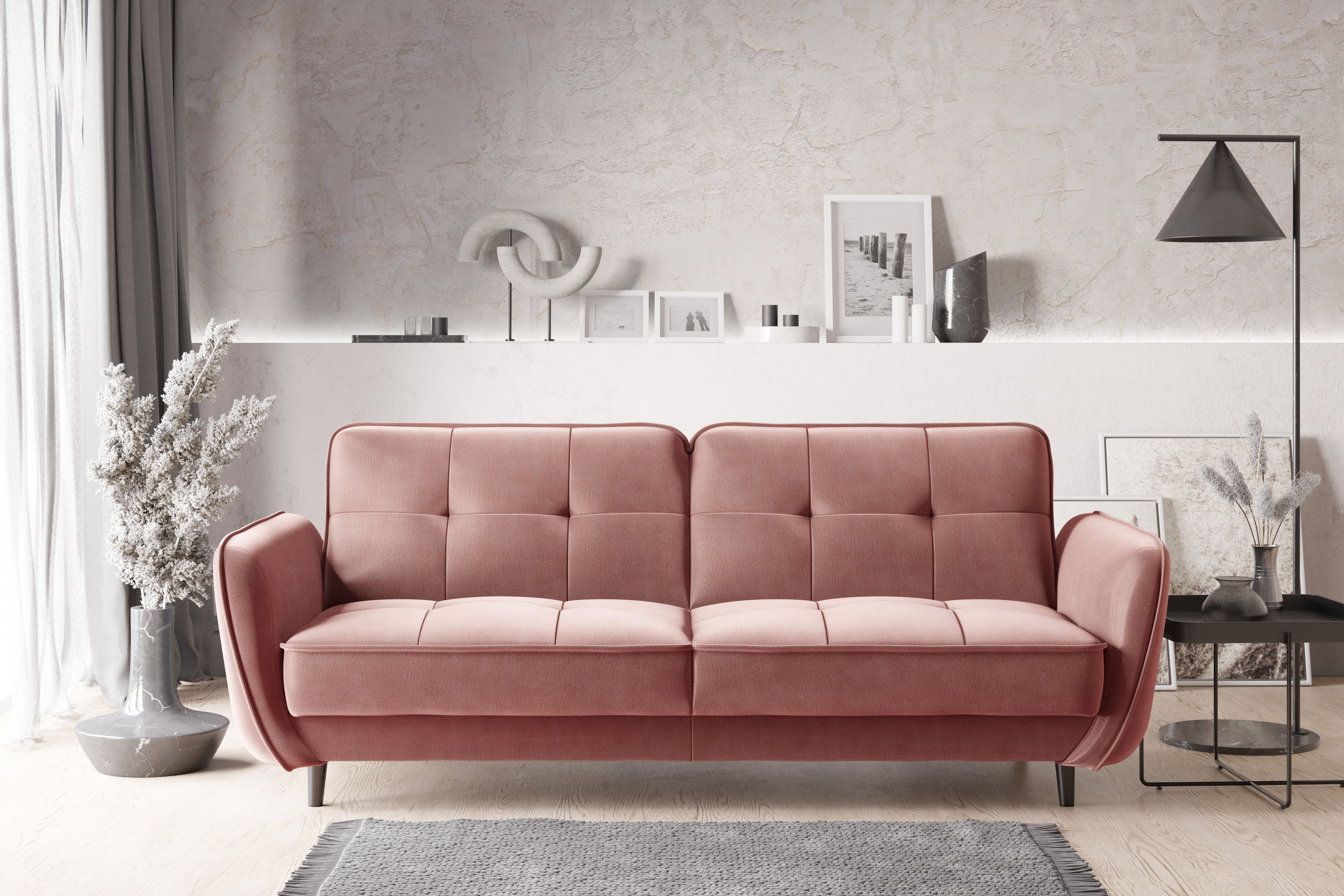 Rozkládací pohovka Bellis v dezénu Nube 24 s výplní sedáku tvořenou HR pěnou a taštičkovými pružinami. Potahová látka Nube: odolná a pevná, hladký povrch s odleskem, voděodolná. Ozdobné vyšívání sedáků a opěrek. Pomocí rozkladu clik-clak vznikne lehací plocha 110x190 cm. Pod sedákem se nachází úložný prostor. Pohovka má dřevěné nožky o výšce 11 cm. K pohovce doporučujeme taburet Bellis.