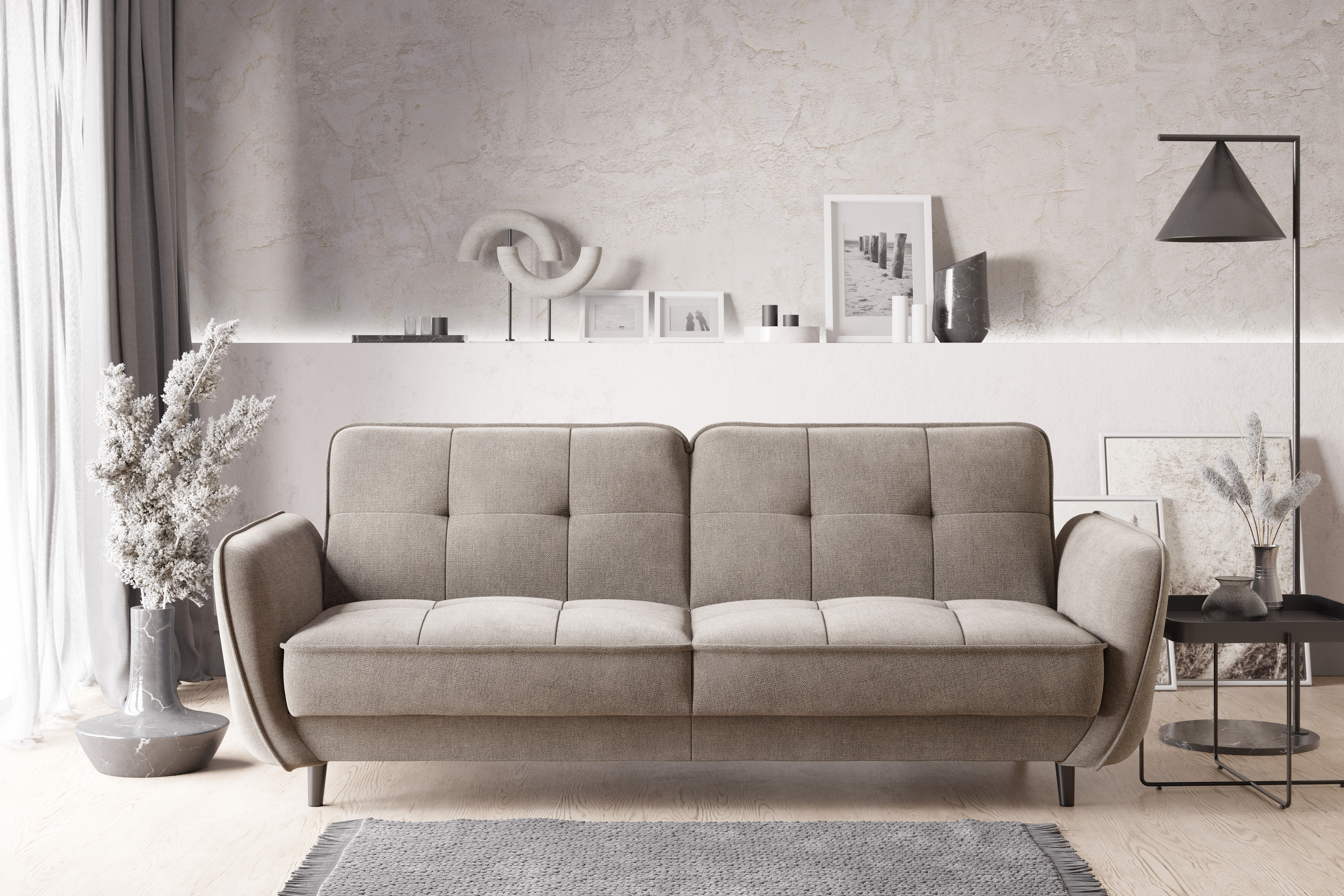 Rozkládací pohovka Bellis v dezénu Poco 7 s výplní sedáku tvořenou HR pěnou a taštičkovými pružinami. Potahová látka Poco: vysoce odolná a pevná, hladký povrch s jemným odleskem je odolná vůči dennímu světlu - nevybledne. Ozdobné vyšívání sedáků a opěrek. Pomocí rozkladu clik-clak vznikne lehací plocha 110x190 cm. Pod sedákem se nachází úložný prostor. Pohovka má dřevěné nožky o výšce 11 cm. K pohovce nabízíme taburet Bellis.