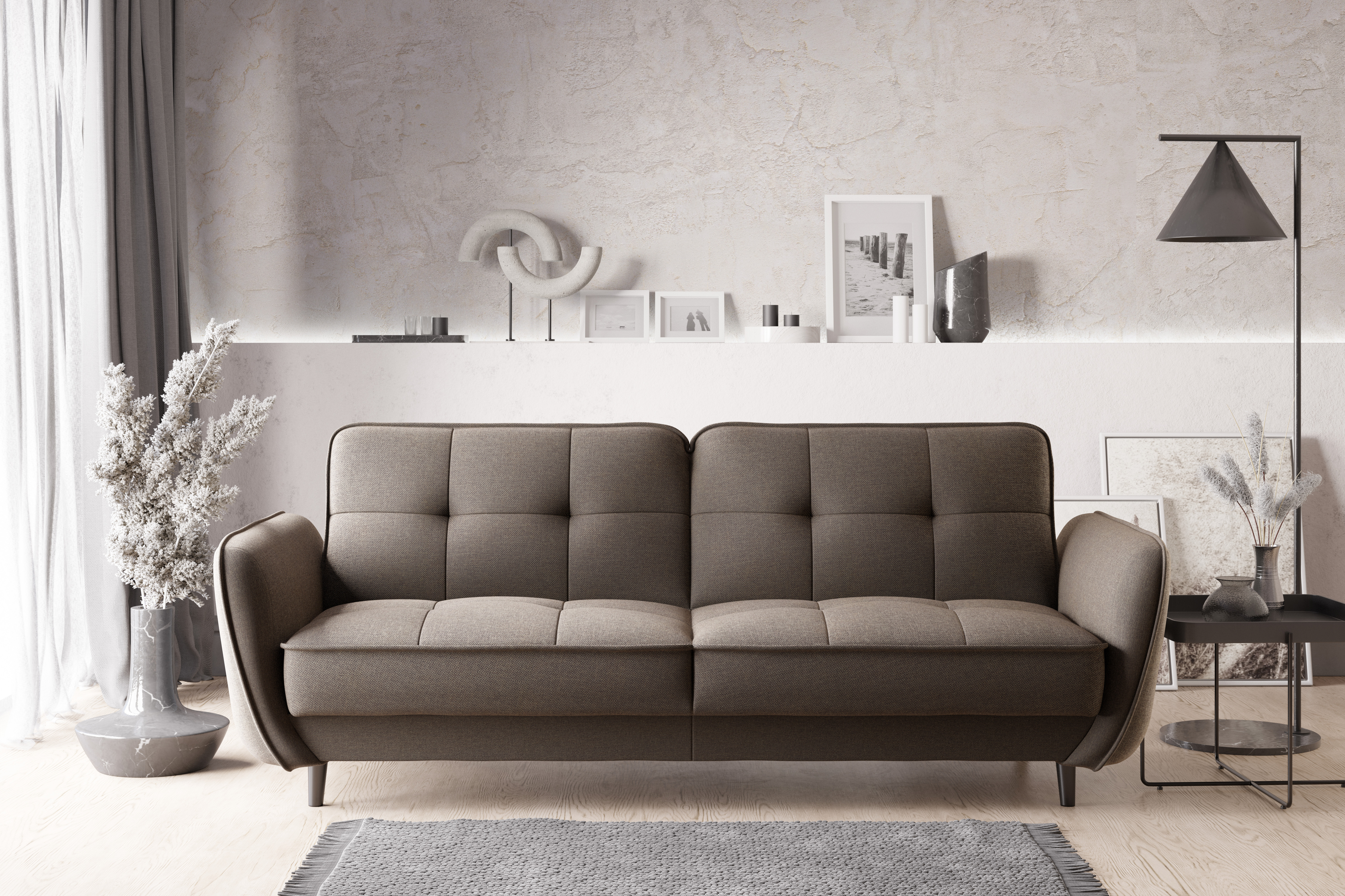 Rozkládací pohovka Bellis v dezénu Vero 18 s výplní sedáku tvořenou HR pěnou a taštičkovými pružinami. Potahová látka Vero: příjemná na dotek a odolná, dostatečně pevná, připomíná lněné plátno, nevybledne. Ozdobné vyšívání sedáků a opěrek. Pomocí rozkladu clik-clak vznikne lehací plocha 110x190 cm. Pod sedákem se nachází úložný prostor. Pohovka má dřevěné nožky o výšce 11 cm. K pohovce nabízíme taburet Bellis.