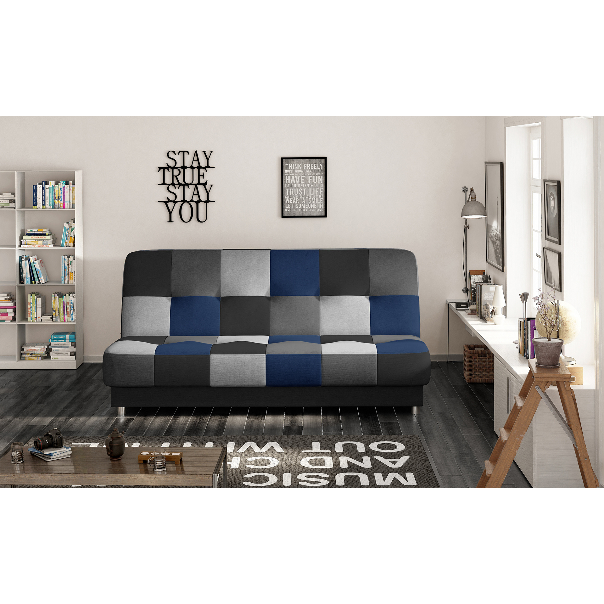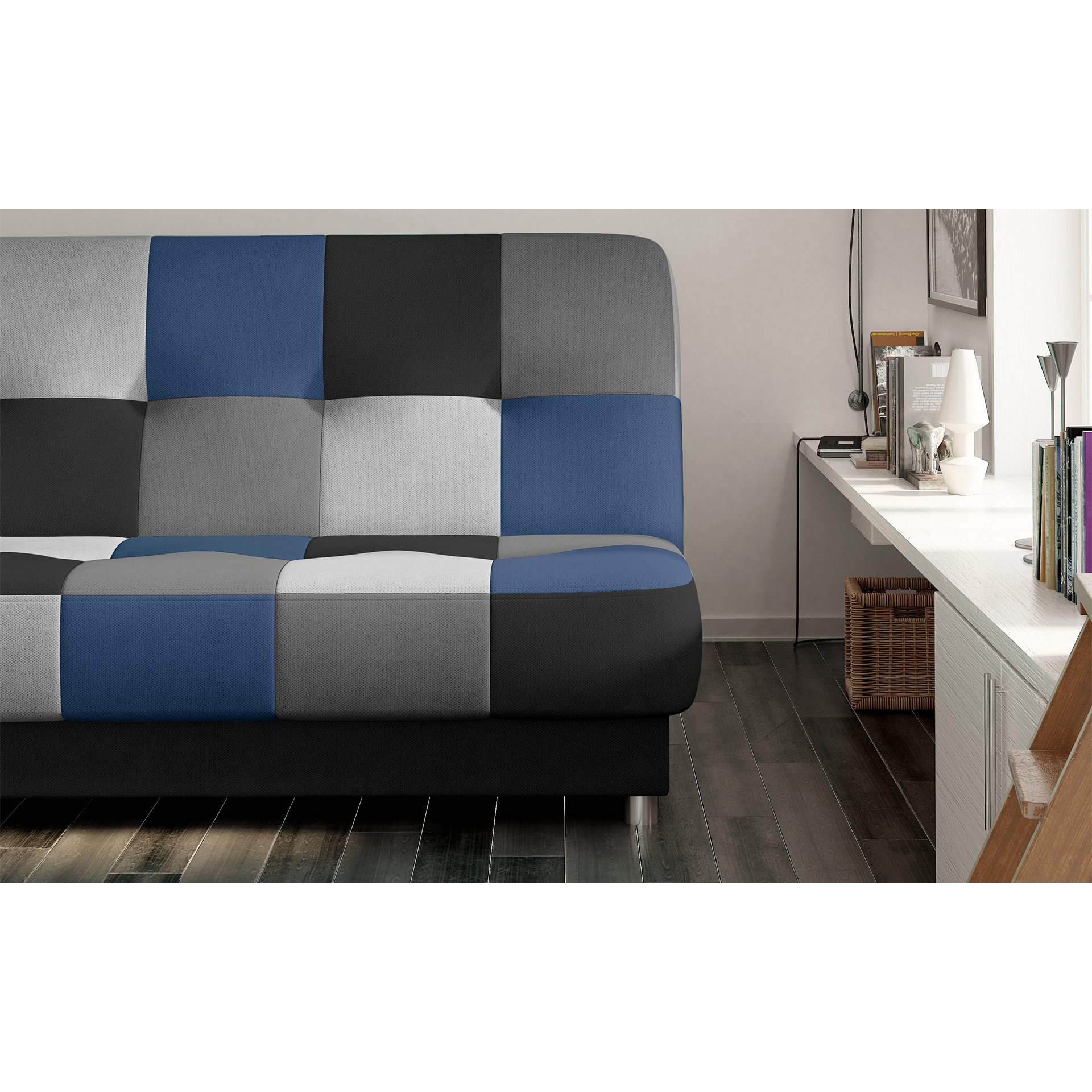 Rozkládací pohovka Cayo v barevném provedení Soro 100/ Soro 93/ Soro 83/ Soro 76 (černá/ šedá/ světle šedá/ modrá) je vyrobena z vysoce kvalitních materiálů. Disponuje 58 cm hlubokým sedákem. Díky mechanismu click-clack vznikne rychle postel s plochou na spaní o rozměru 117x192 cm. Samozřejmostí je úložný prostor. Nohy pohovky jsou kovové.