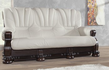 Moderní luxusní pohovka je vyrobena z pravé hovězí kůže, není rozkládací. Kostra je vyrobena z tvrdého dubového dřeva s pevnou konstrukcí. Výplň sedáků je vysoce kvalitní polyuretanová pěna s pružinou bonel. Možnost výběru barvy kůže. Vámi zvolenou variantu barvy kůže i dřeva (dle přiloženého vzorníku) uveďte do objednávky.
