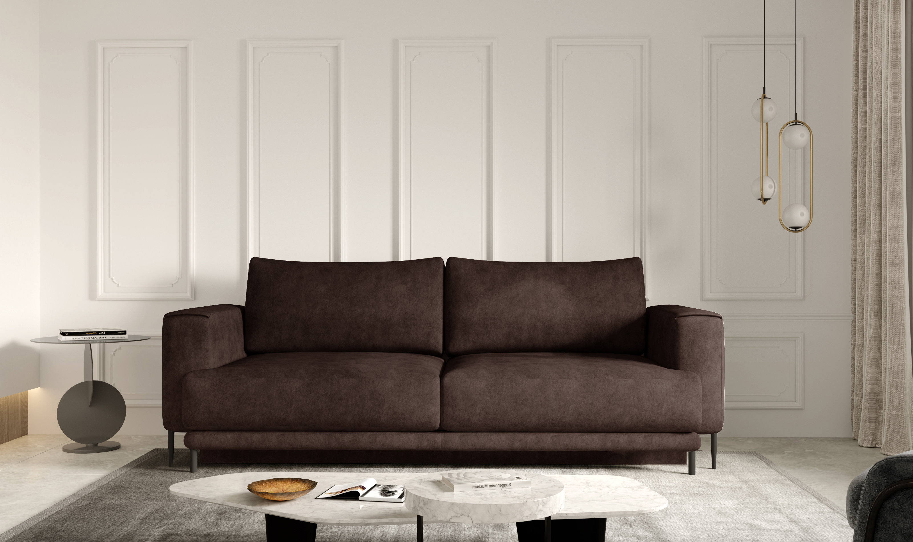 Pohovka Dalia v provedení Leve 22 - příjemná na dotek, imitace přírodní kůže. Pohovka má sedáky a opěradla vyplněná pěnou HR a T25, které jsou odolné proti všem druhům nevzhledných promáčklin a dutin. Rozkladem vznikne spací plocha 145x215 cm. Samozřejmostí je úložný prostor. Pohovka stojí na čtyřech černých, kuželovitých kovových nohách.