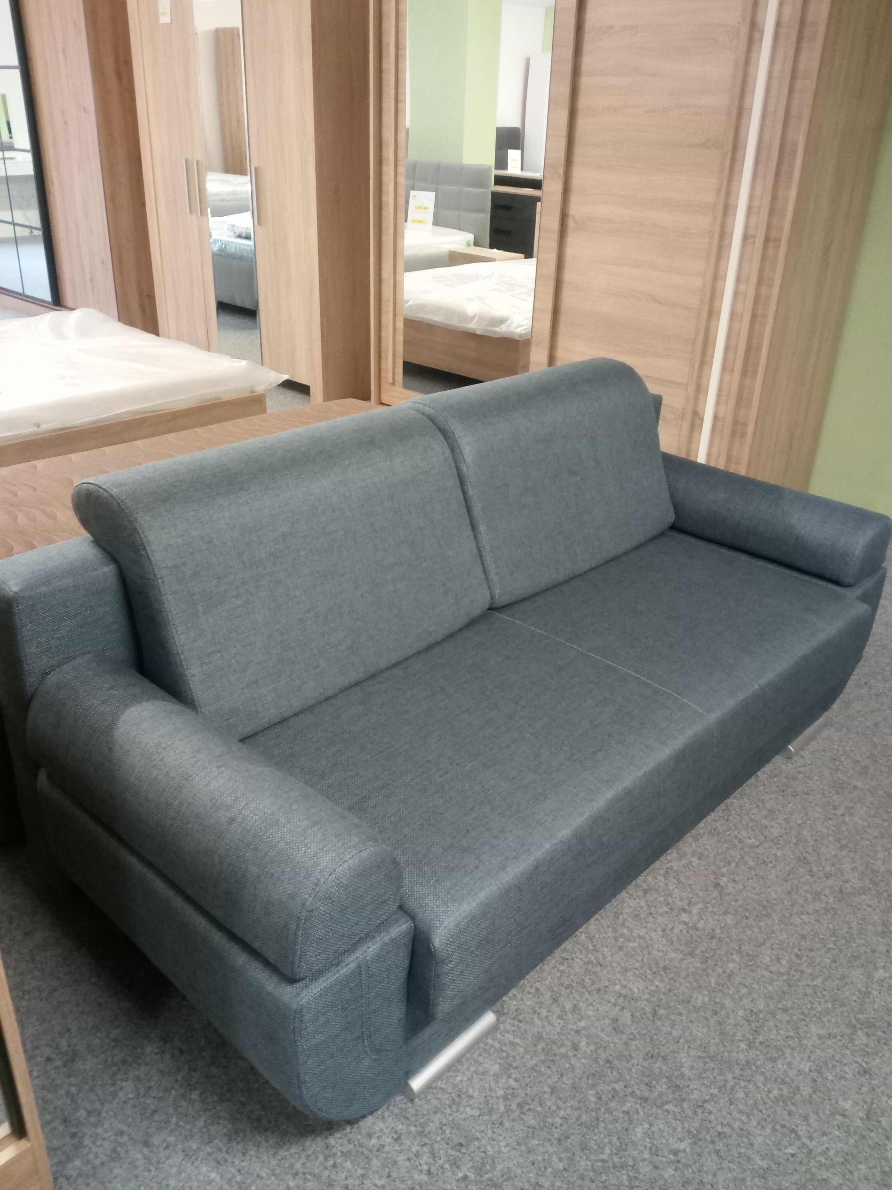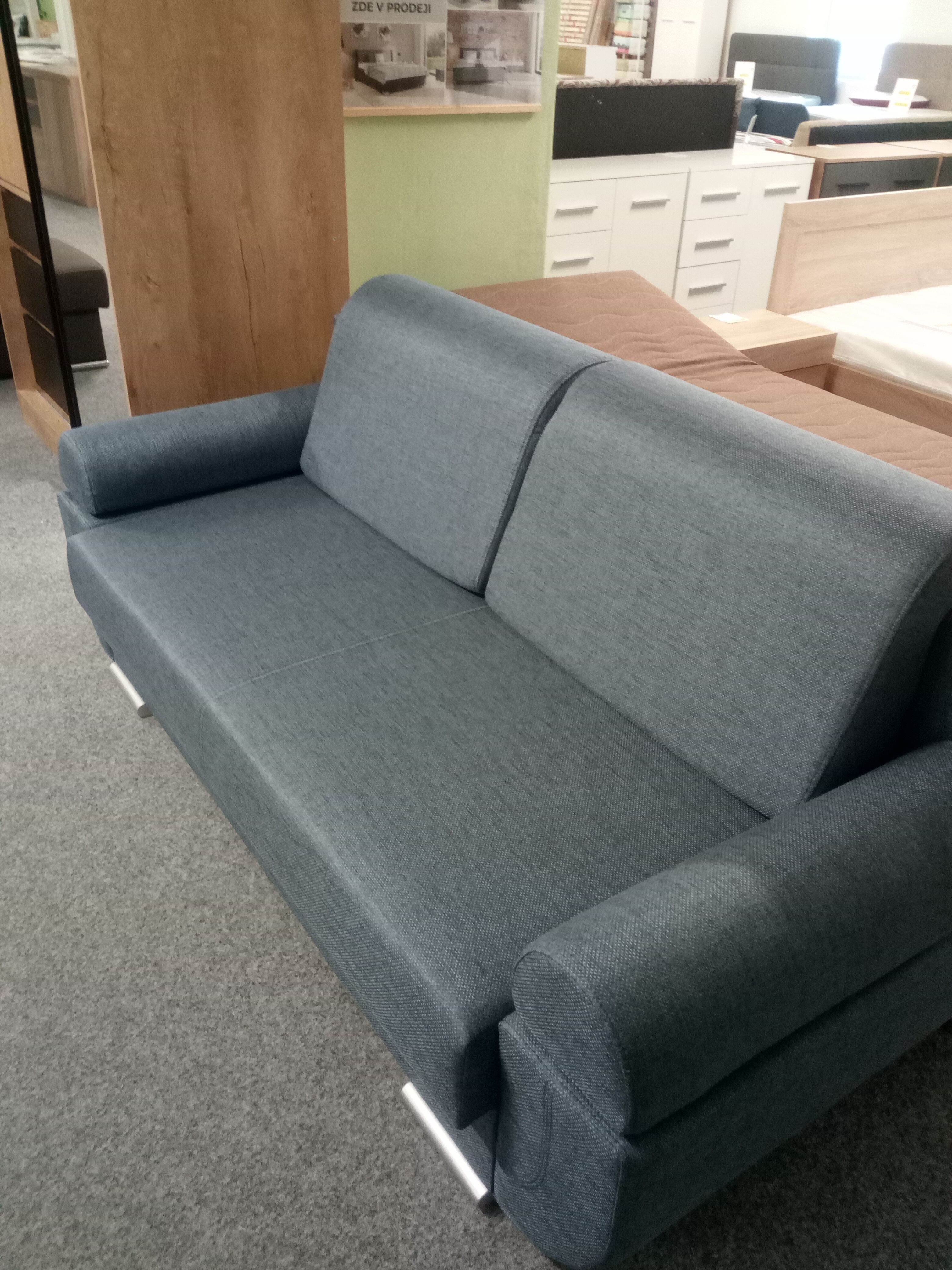Velmi elegantní rozkládací pohovka, která má úložný prostor a možnost rozložení na spací plochu 192x140cm. Tato pohovka je velmi moderní a hodí se do každého interiéru.Výplň sedací soupravy tvoří kombinace PUR pěny a faliste pružin. Nožky v barvě chrom. Potahová látka Luis 74. Možnost výběru různých potahových látek. Foto je pouze ilustrační.