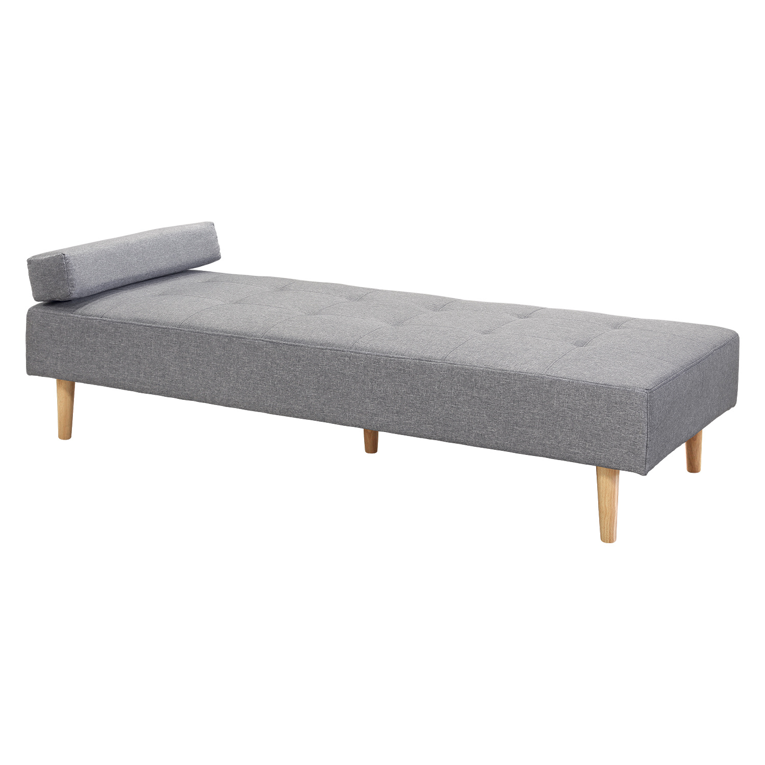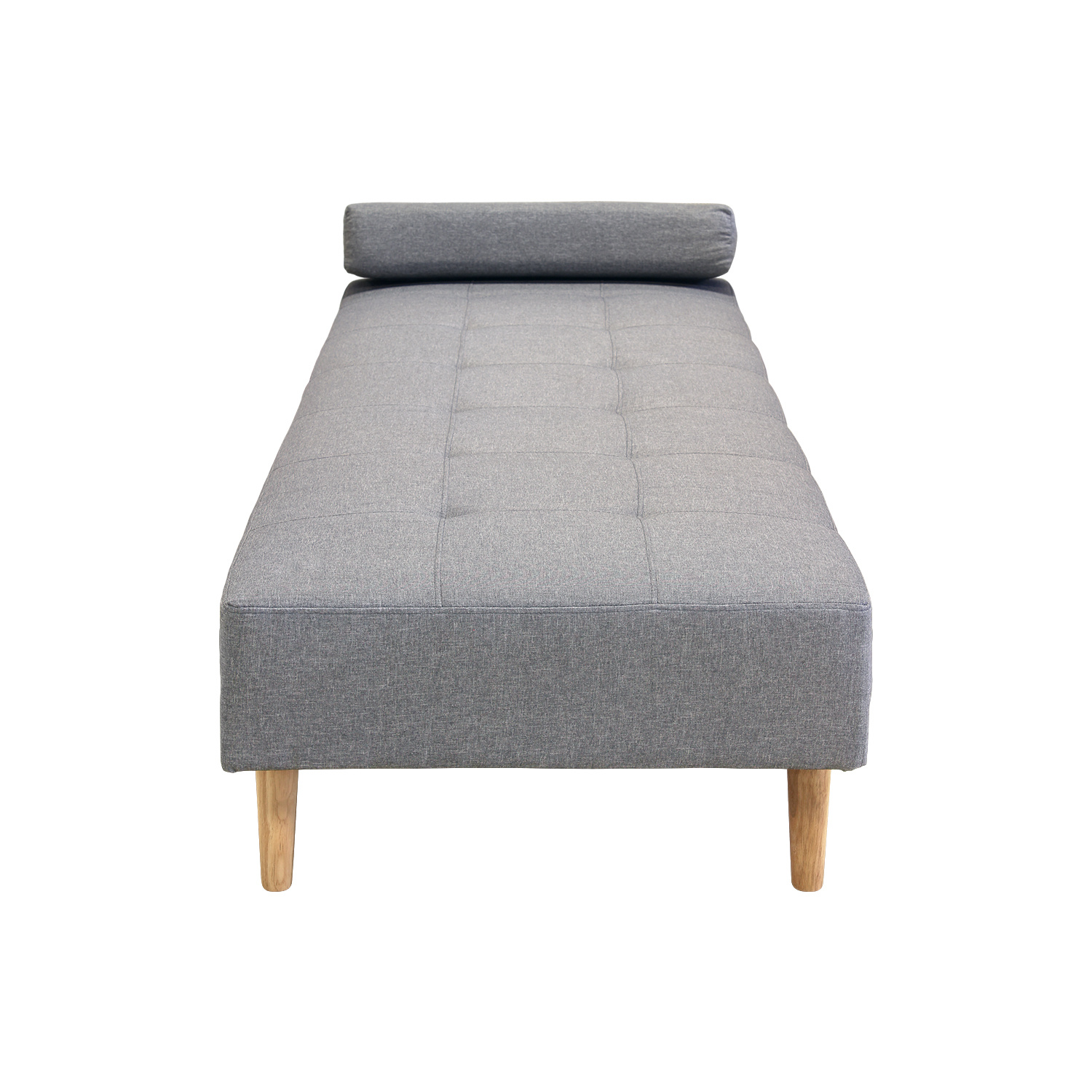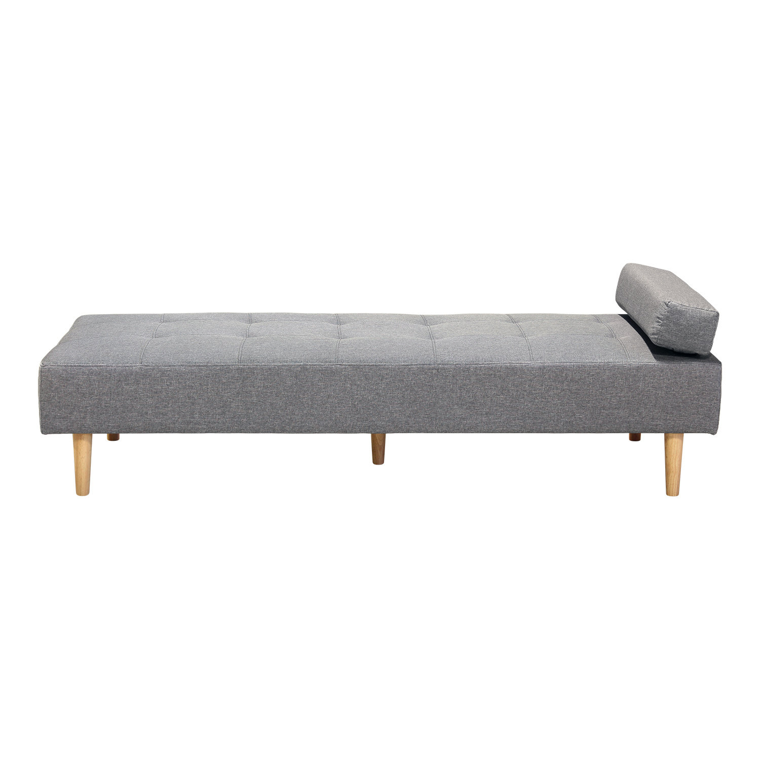 Pohovka s textilním potahem v barevném provedení šedá. Nohy postele jsou dřevěné. Cena včetně polštářku.