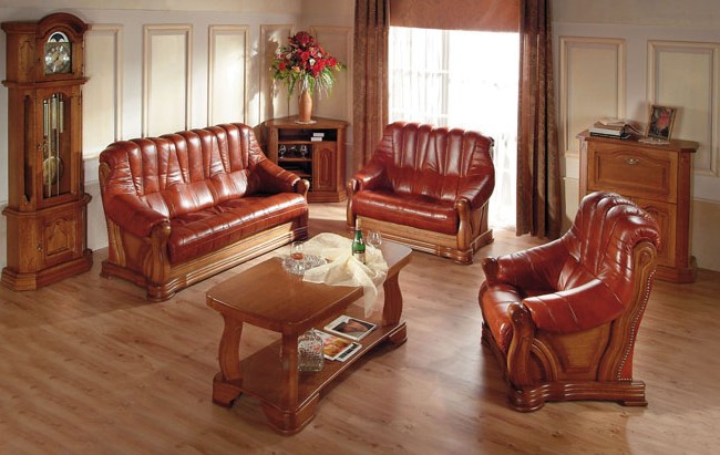 Moderní luxusní pohovka je vyrobena z pravé hovězí kůže. Kostra je vyrobena z tvrdého dubového dřeva s pevnou konstrukcí. Na bocích této pohovky je ručně vyřezaný motiv. Výplň sedáků je vysoce kvalitní polyuretanová pěna s pružinou bonel. Možnost výběru barvy kůže, dřeva i složení sedací soupravy FRYDERYK. Vámi zvolenou variantu barvy kůže i dřeva (dle přiloženého vzorníku ve fotkách) uveďte do objednávky.