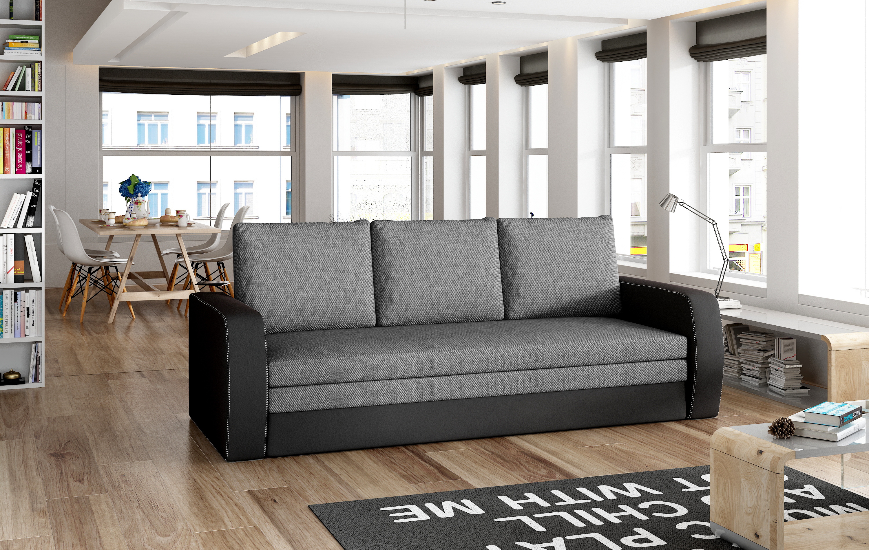 Moderní rozkládací pohovka INVERSA je vyrobena v barevném provedení látka Sawana 05/ eko kůže Soft 11.Výhodu je pevná konstrukce. Sedák je vyplněn polyuretanovou pěnou T25. Díky rozkládacímu systému v podobě výsuvu vznikne spací plocha o rozměru 183x140 cm. Další výhodou je úložný prostor na lůžkoviny. Barevné provedení jako na hlavní fotce.