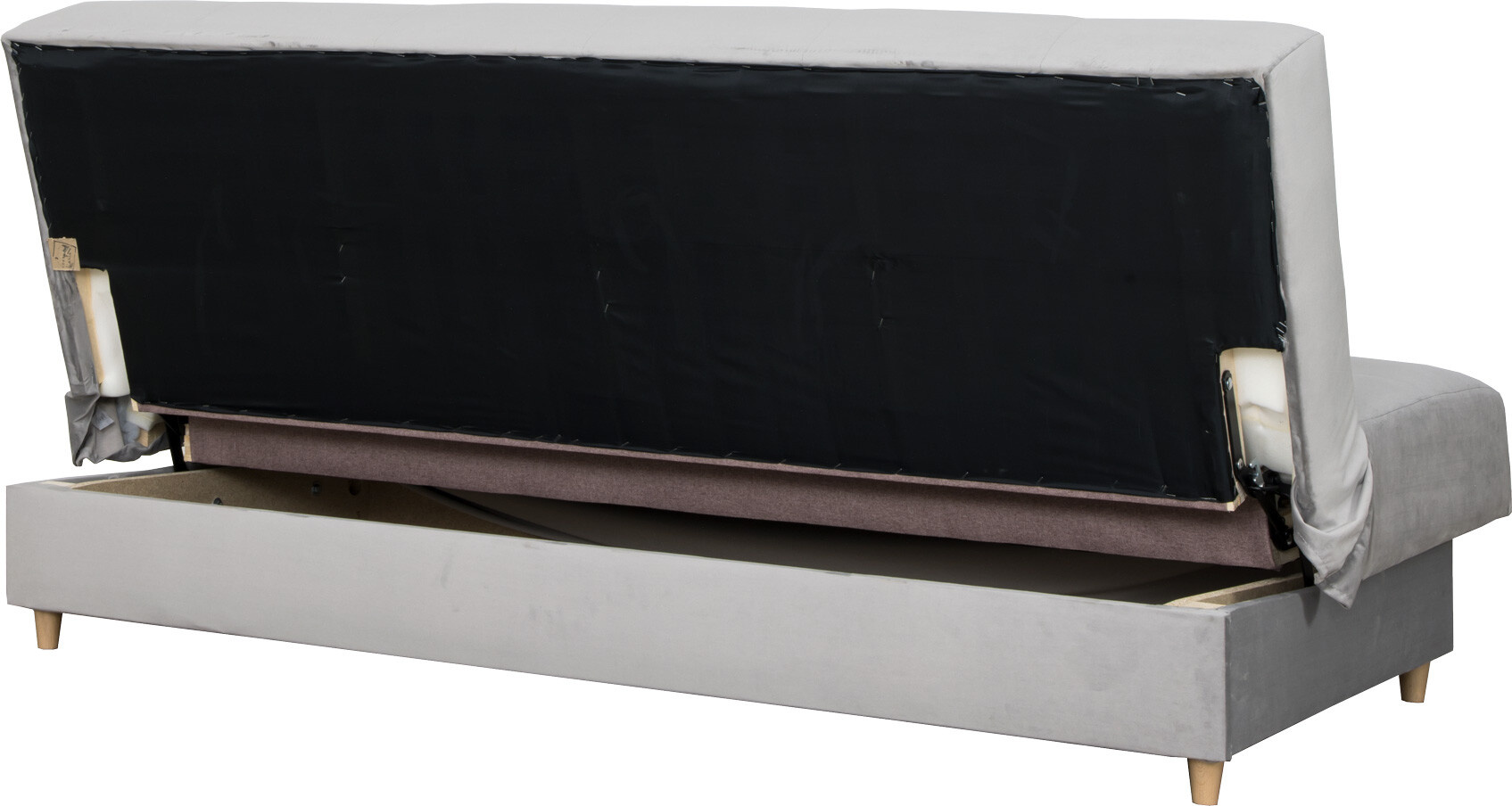 Moderní pohovka je vyrobena v kombinaci PUR pěny a bonell pružin. Potahová látka dle výběru. Pohovka má úložný prostor, komfortní sezení a praktickou funkci lůžka pro občasné přespání. Spací plocha : 119 x 197 cm.