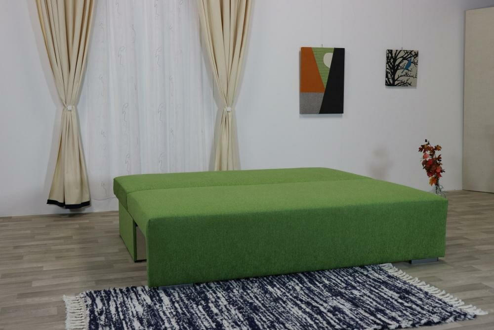 Celočalouněná rozkládací pohovka Andrea s úložným prostorem a dvěma opěradlovými polštáři, vhodná i pro každodenní spaní. Kostra pohovky je tvořena kombinací masivu a velkoplošných materiálů (DTD). Sedací a lehací plochy tvoří pružinové jádro, polštáře jsou plněny PUR drtí. Rozkladem vznikne spací plocha 195x170 cm.