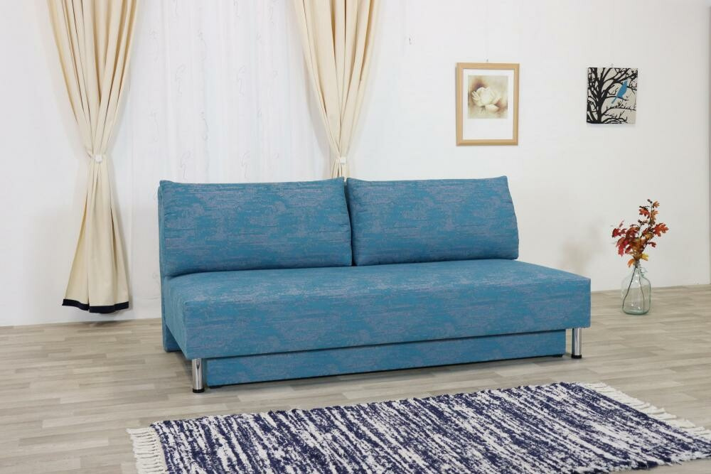 Celočalouněná rozkládací pohovka Lada s úložným prostorem. Kostra pohovky je tvořena kombinací masivu a velkoplošných materiálů (DTD). Sedací a lehací plochy tvoří pružinové jádro, polštáře jsou plněny PUR drtí. Pohovka včetně polštářů.