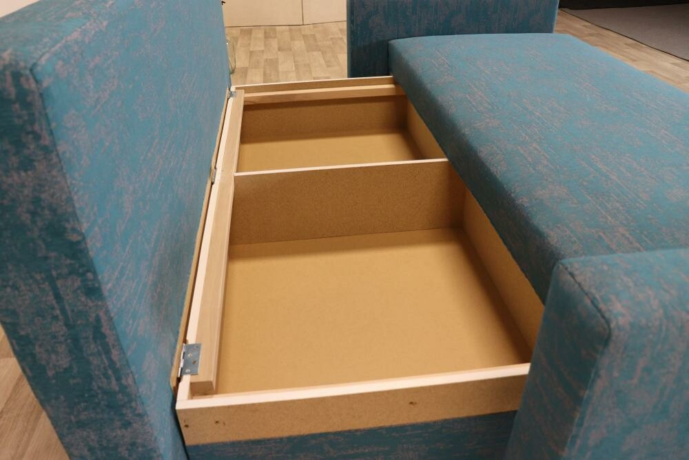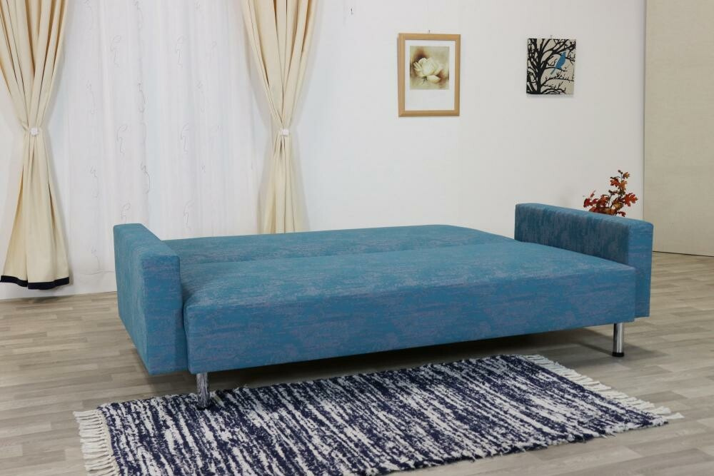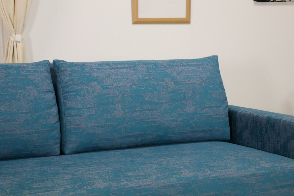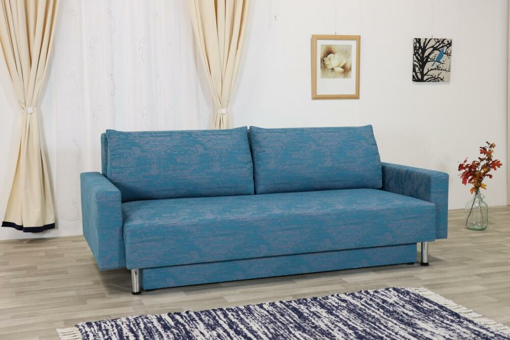 Celočalouněná rozkládací pohovka Lada s úložným prostorem. Kostra pohovky je tvořena kombinací masivu a velkoplošných materiálů (DTD). Sedací a lehací plochy tvoří pružinové jádro, polštáře jsou plněny PUR drtí. Pohovka včetně polštářů a područek.