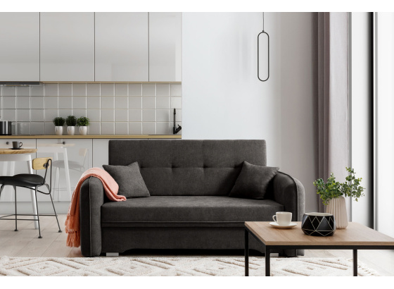 Kostru pohovky Laine tvoří masivní dřevo a dřevotříska. Vlnité pružiny faliste a kvalitní PUR pěna T-25 zaručí pružnost a dokonalý komfort sedací plochy, pod kterou najdete úložný prostor. Pohovka stojí na 2,5 cm vysokých nožkách z plastu. Díky rozkládací funkci vznikne spací plocha 125x196 cm na příležitosné spaní.