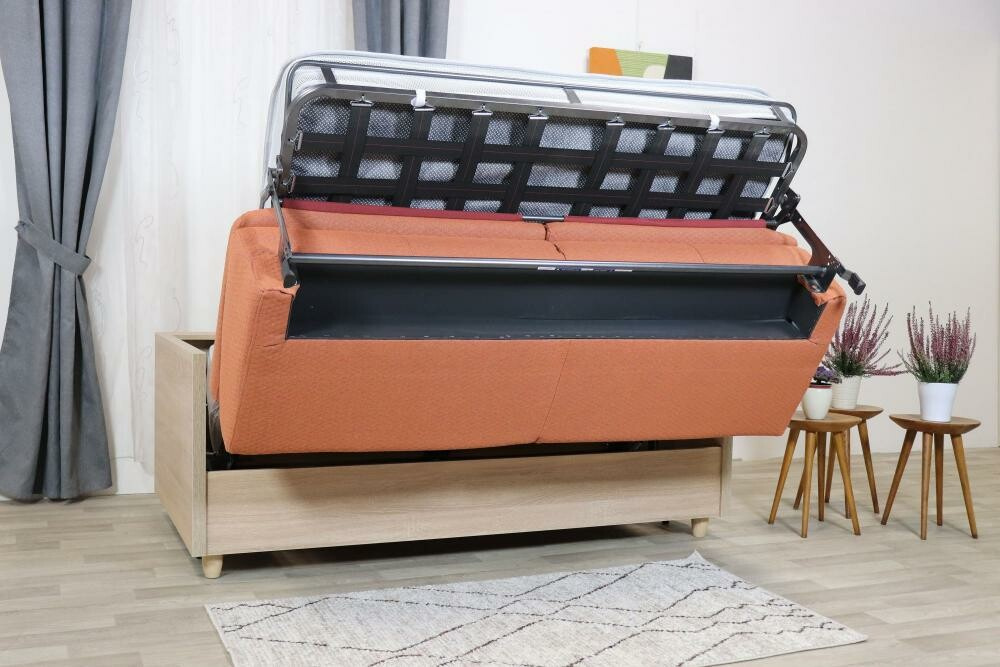 Čalouněné sedadlo a opěradlo pohovky Laura je kombinováno s korpusem a područkami z lamina. Pohovka se rozkládá DOPŘEDU" a je určená pro každodenní spaní. Rozkladem vznikne spací plocha 140x190 cm. V základní nabídce jsou dva rozměry Laura 173 cm a Laura 193 cm.