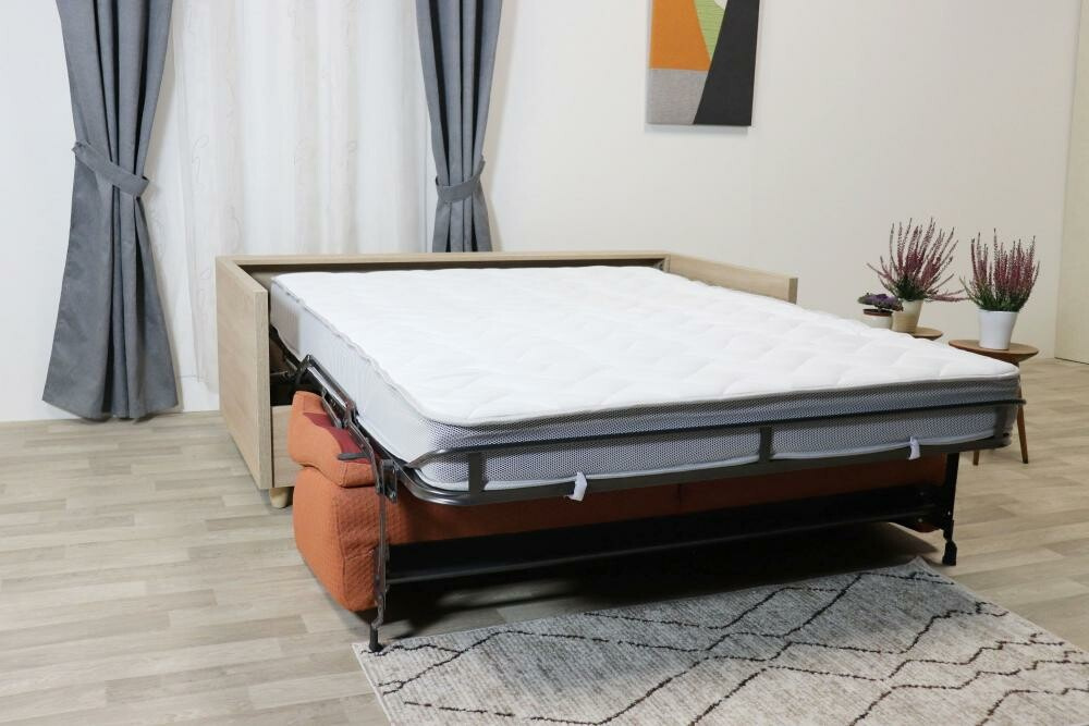 Čalouněné sedadlo a opěradlo pohovky Laura je kombinováno s korpusem a područkami z lamina. Pohovka se rozkládá DOPŘEDU" a je určená pro každodenní spaní. Rozkladem vznikne spací plocha 160x190 cm. Lamelový rošt s předpruženými lamelami s obloukem o výšce 2 cm, matrace o výšce 16 cm. V základní nabídce jsou dva rozměry Laura 173 cm a Laura 193 cm.