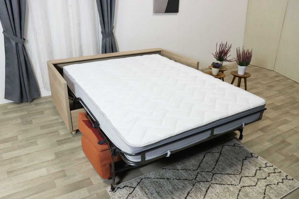Čalouněné sedadlo a opěradlo pohovky Laura je kombinováno s korpusem a područkami z lamina. Pohovka se rozkládá DOPŘEDU" a je určená pro každodenní spaní. Rozkladem vznikne spací plocha 160x190 cm. V základní nabídce jsou dva rozměry Laura 173 cm a Laura 193 cm.