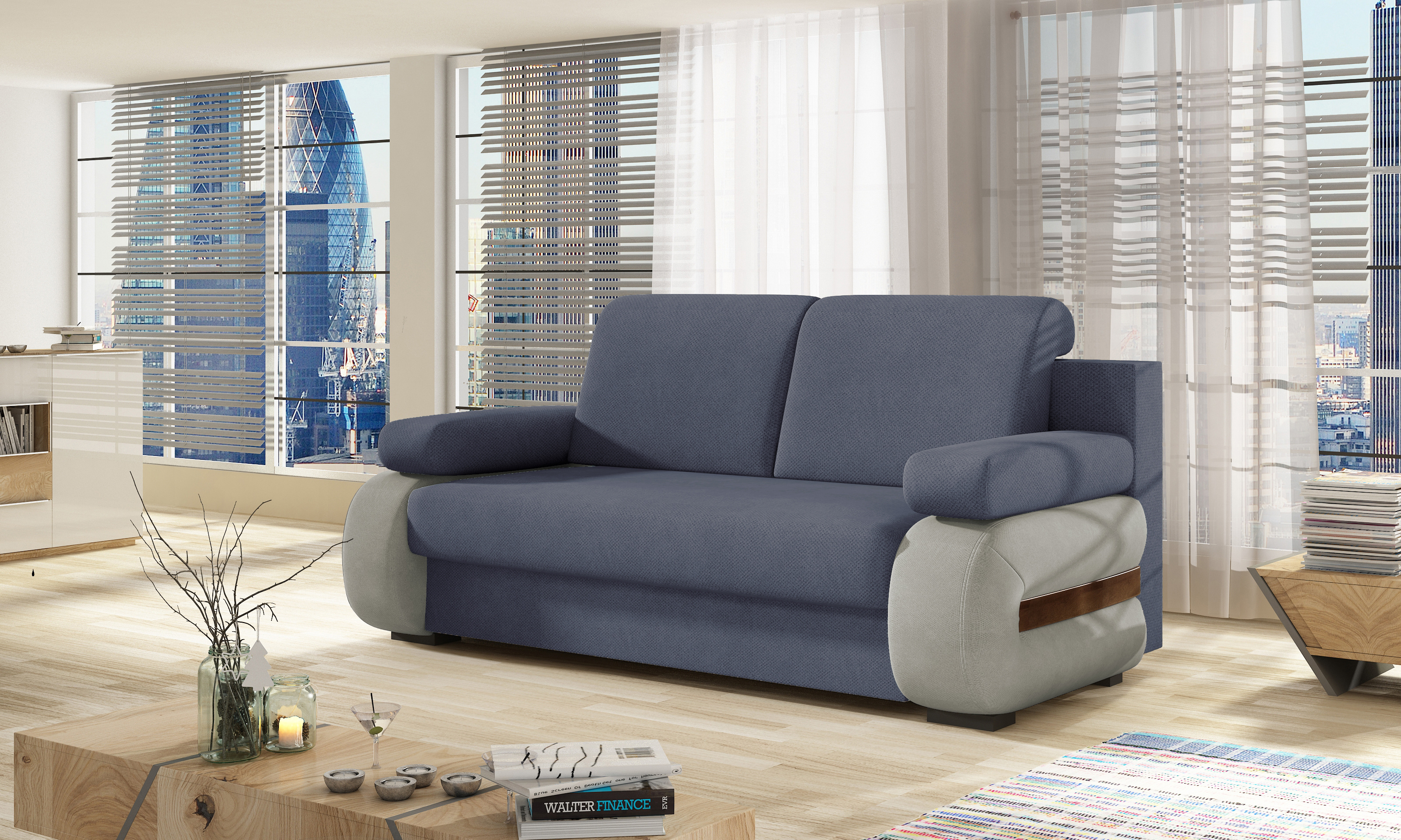 Pohovka Laura v barevném látkovém provedení Soro 76/ Soro 83. Sedák pohovky využívá kombinaci pružin Bonnell a pěny T25. Díky tomu je měkký, ale stále podporuje páteř. Po rozložení vznikne spací plocha 140x200 cm. Další výhodou je hluboký zásobník na ložní prádlo uvnitř spodního boxu.