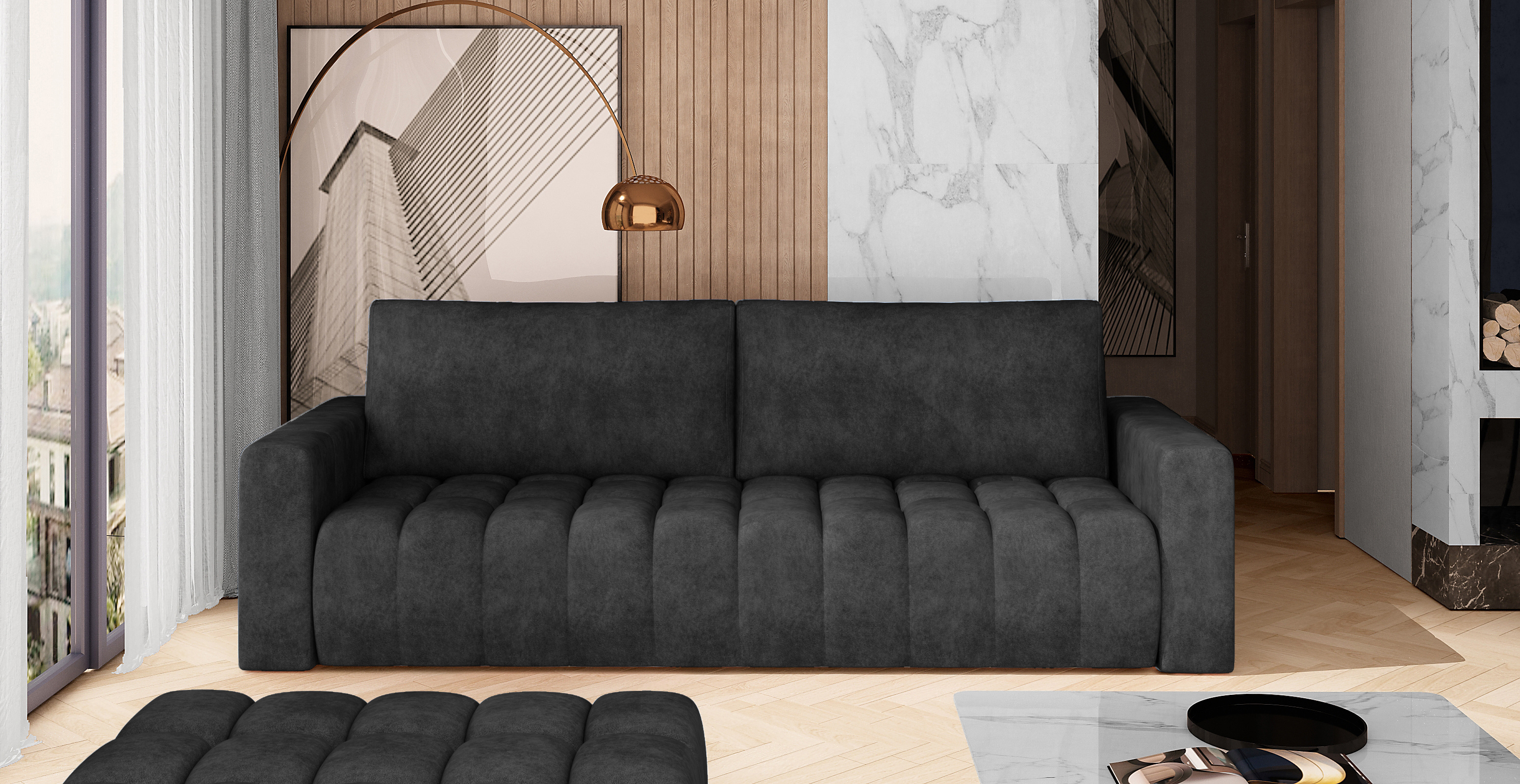 Pohovka Lazaro v dezénu Dora 96 zaujme stylovým prošíváním na sedáku a na bocích.Originální sedák má výplň v kombinaci pěny T25 a HR pěnou. Rozkladem vznikne spací plocha 195x125 cm. Samozřejmostí je úložný prostor. K pohovce lze dokoupit křeslo Lazaro.