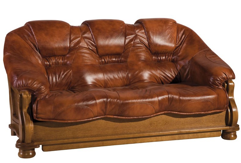 Rustikální luxusní pohovka je vyrobena z pravé hovězí kůže. Na první pohled zaujme svým prošívaným potahem. Kostra je vyrobena z tvrdého dubového dřeva s pevnou konstrukcí. Výplň sedáků je vysoce kvalitní polyuretanová pěna s pružinou bonel. Pohovka je rozkládací, vhodná pro příležitosné spaní, spací plocha 140x190 cm.. Možnost výběru barvy kůže i dřeva.