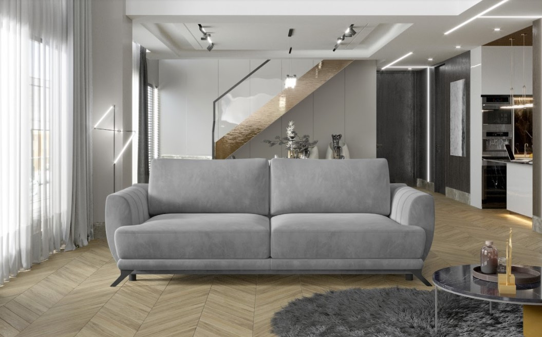 Pohovka MEGIS v sobě spojuje minimalismus a eleganci. Má jednoduchý, nekomplikovaný tvar a zdobí ji jemné prošití na vysokých područkách nestandardního tvaru. Po rozložení se promění v pohodlnou postel o rozloze 200 x 145 cm. Další výhodou je úložný prostor. Díky použití nejlepší HR pěny a vlnitých pružin typu B se pohovka MEGIS nedeformuje, což přispívá k její dlouhé životnosti. Potahová látka jako na hlavní fotografii.