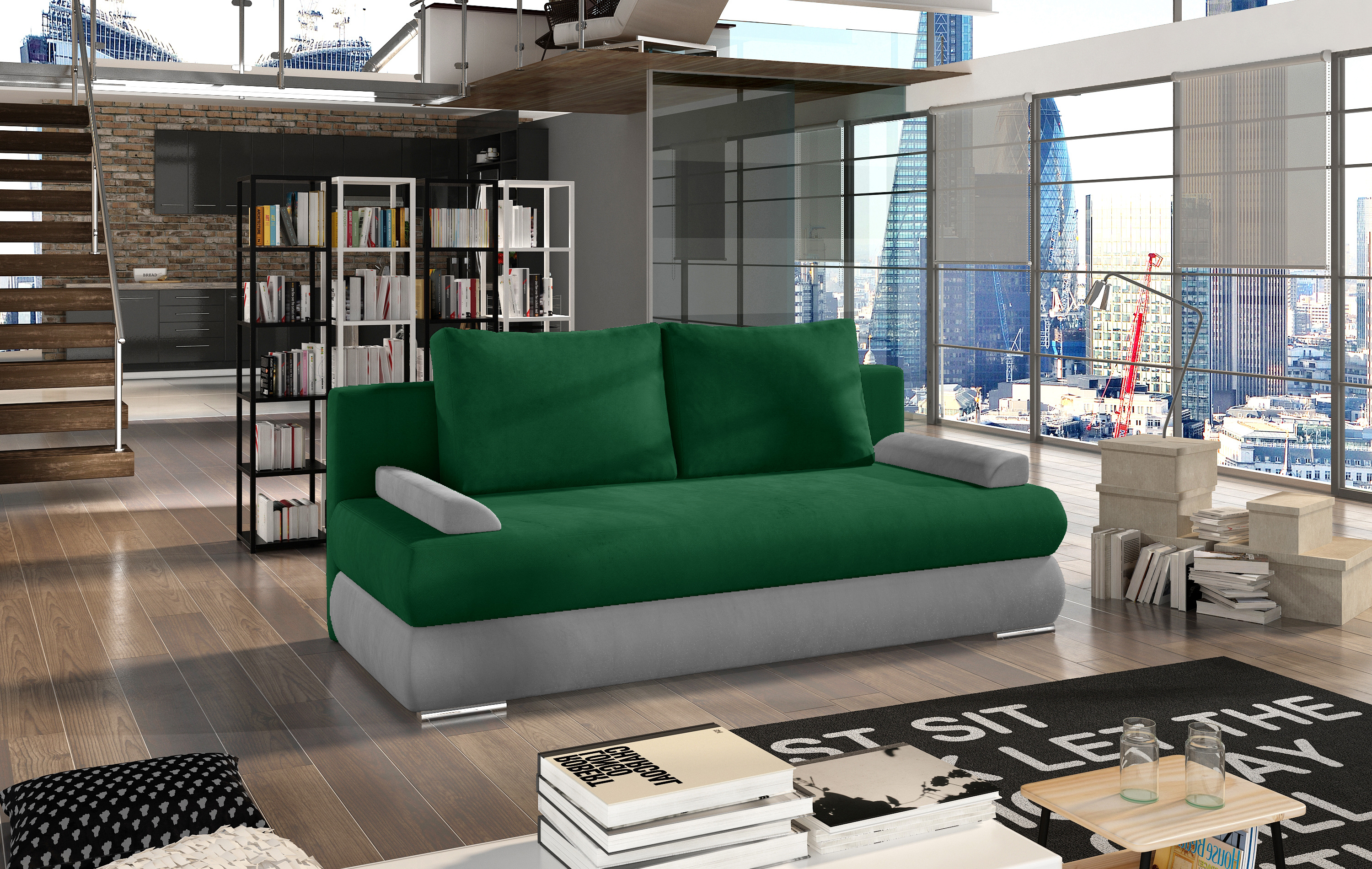 Pohovka Milo v barevném látkovém provedení Monolith 37 a Monolith 84. Sedák pohovky využívá kombinaci pružin Bonnell a pěny T25. Díky tomu je měkký, ale stále podporuje páteř. Po rozložení vznikne spací plocha 140x200 cm. Další výhodou je hluboký zásobník na ložní prádlo uvnitř spodního boxu.