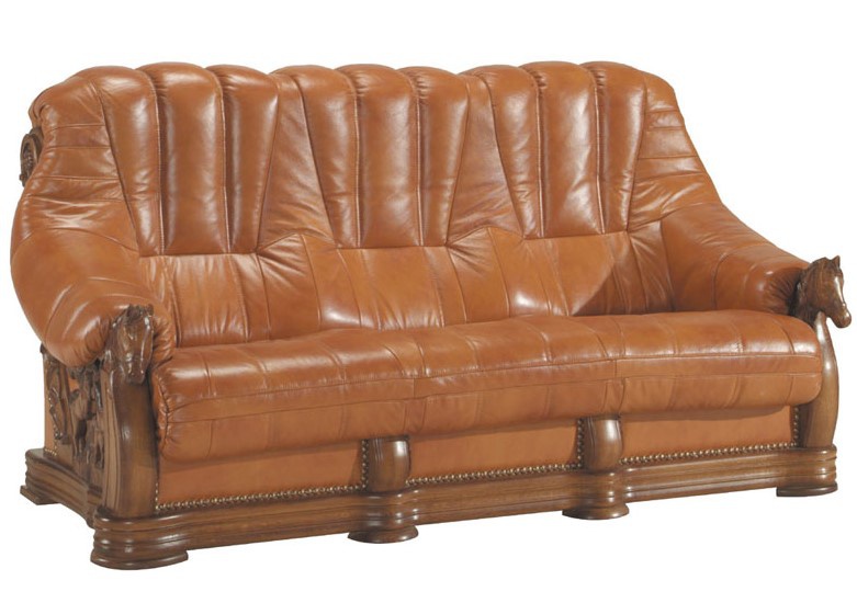 Stylová luxusní rozkládací pohovka je vyrobena z pravé hovězí kůže, rozklad na příležitostní spaní. Spací plocha 140x190 cm.Kostra je vyrobena z dubového masivu, do kterého jsou napůl ručně vydlátovány a napůl strojem vyřezány různé ornamenty, hlavním motivem však jsou koně, jejichž hlava také zdobí konce opěrek na ruce. Výplň sedáků je vysoce kvalitní polyuretanová pěna s pružinou bonel. Možnost výběru barvy kůže, dřeva i složení sedací soupravy OSKAR. Vámi zvolenou variantu barvy kůže i dřeva (dle přiloženého vzorníku ve fotkách) uveďte do objednávky.