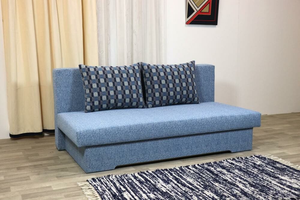 Celočalouněná rozkládací pohovka Romana s úložným prostorem. Kostra pohovky je tvořena kombinací masivu a velkoplošných materiálů (DTD). Sedací a lehací plochy tvoří pružinové jádro, polštáře jsou plněny PUR drtí. Na zátěžovou pěnu je ještě přidána studená pěna o tloušťce 3 cm. Pohovka včetně polštářů.