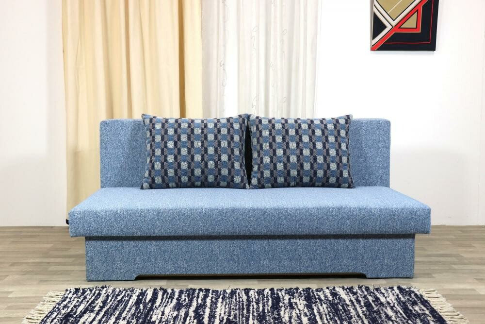 Celočalouněná rozkládací pohovka Romana s úložným prostorem. Kostra pohovky je tvořena kombinací masivu a velkoplošných materiálů (DTD). Sedací a lehací plochy tvoří pružinové jádro, polštáře jsou plněny PUR drtí. Pohovka včetně polštářů.