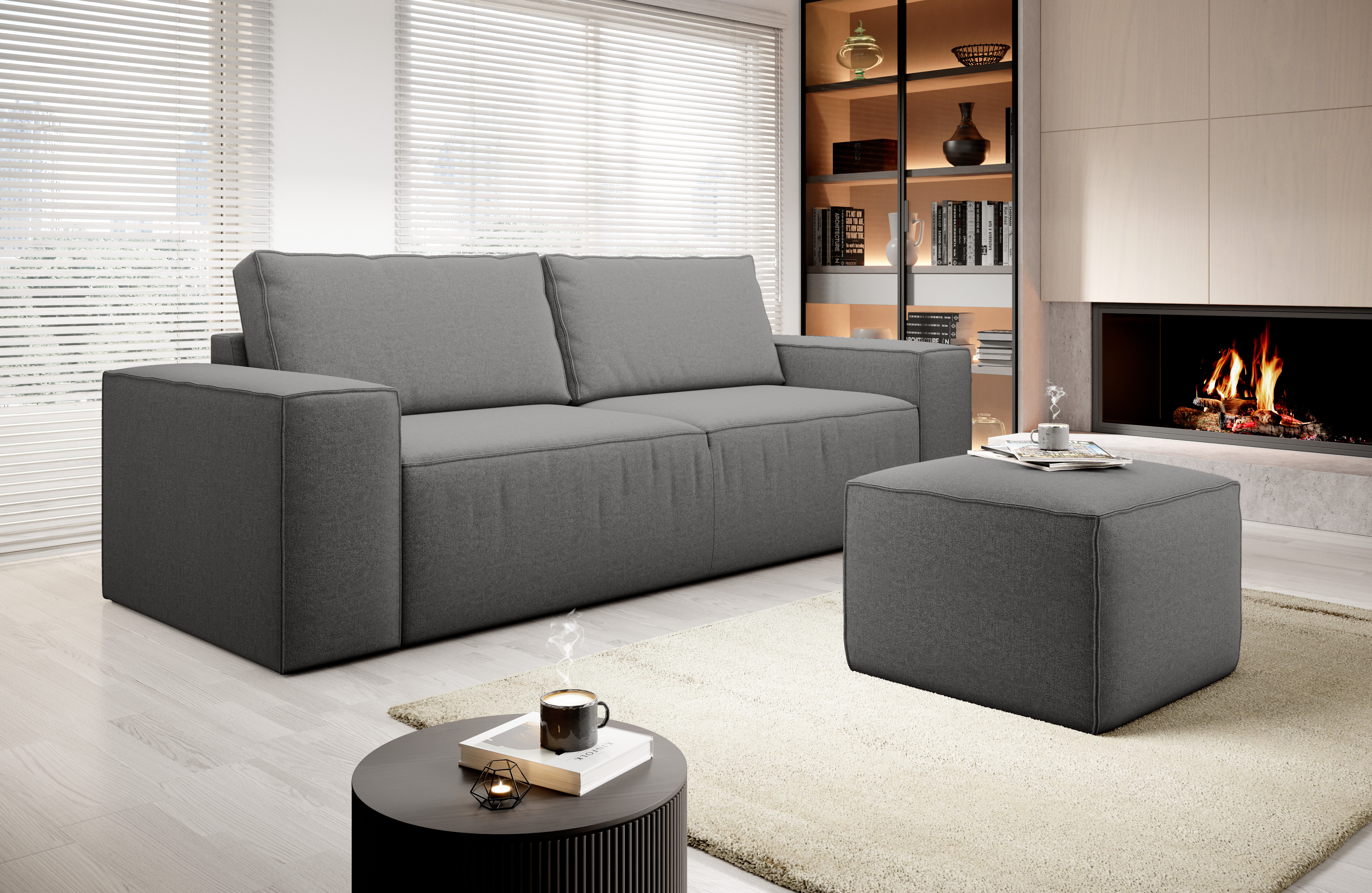 Pohovka Silla v provedení Gojo 5 má sedáky vyplněné HR pěnou a zádové polštáře pěnou T25. Rozkladem vznikne ložná plocha 200x145 cm. K pohovce je možno dokoupit taburet Silla.