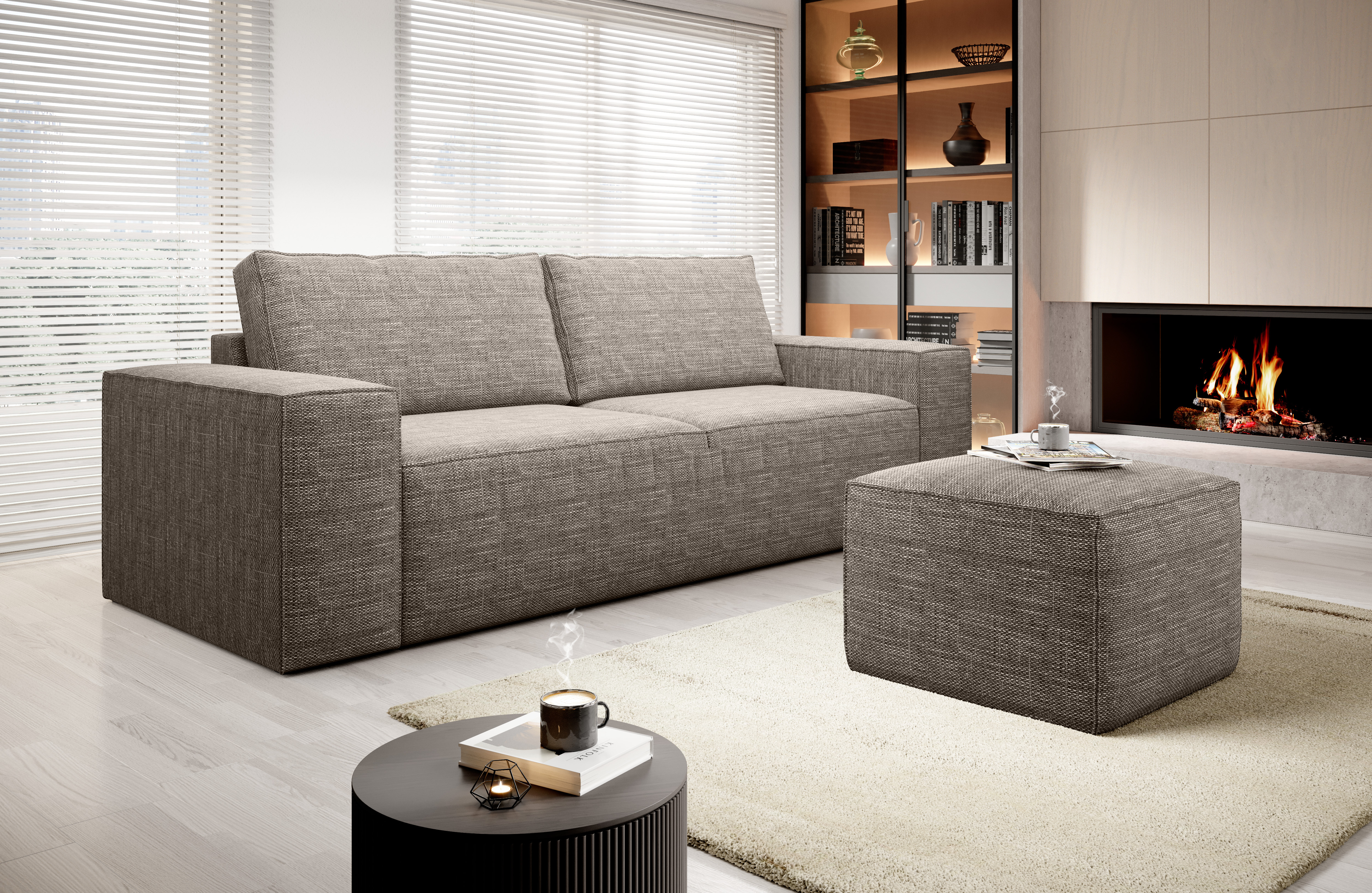 Pohovka Silla v provedení Marte 20 má sedáky vyplněné HR pěnou a zádové polštáře pěnou T25. Rozkladem vznikne ložná plocha 200x145 cm. K pohovce je možno dokoupit taburet Silla.