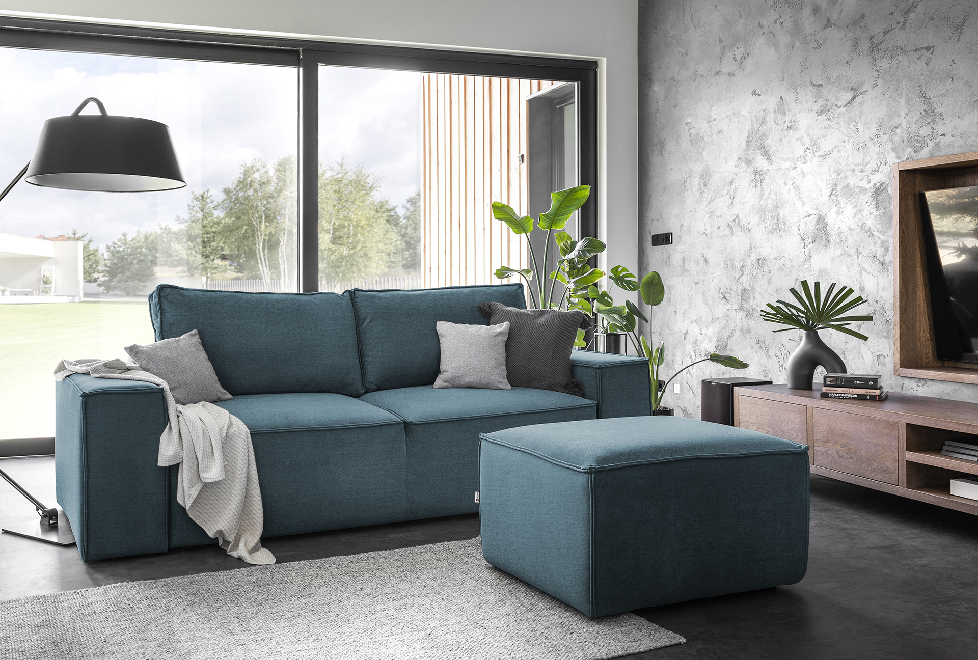 Pohovka Silla v provedení Monolith 76 má sedáky vyplněné HR pěnou a zádové polštáře pěnou T25. Rozkladem vznikne ložná plocha 200x145 cm. K pohovce je možno dokoupit taburet Silla.
