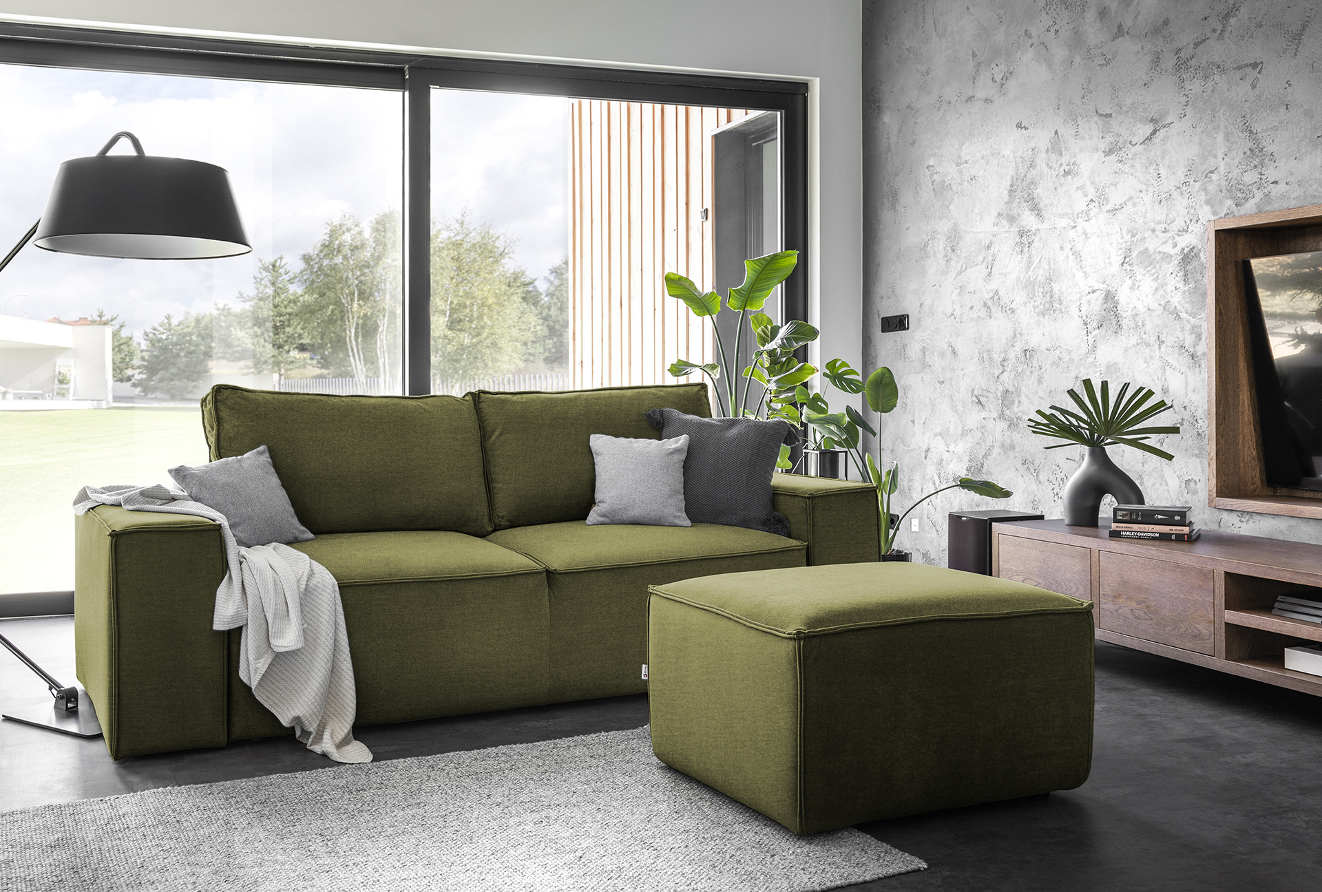 Pohovka Silla v provedení Nube 33 má sedáky vyplněné HR pěnou a zádové polštáře pěnou T25. Rozkladem vznikne ložná plocha 200x145 cm.