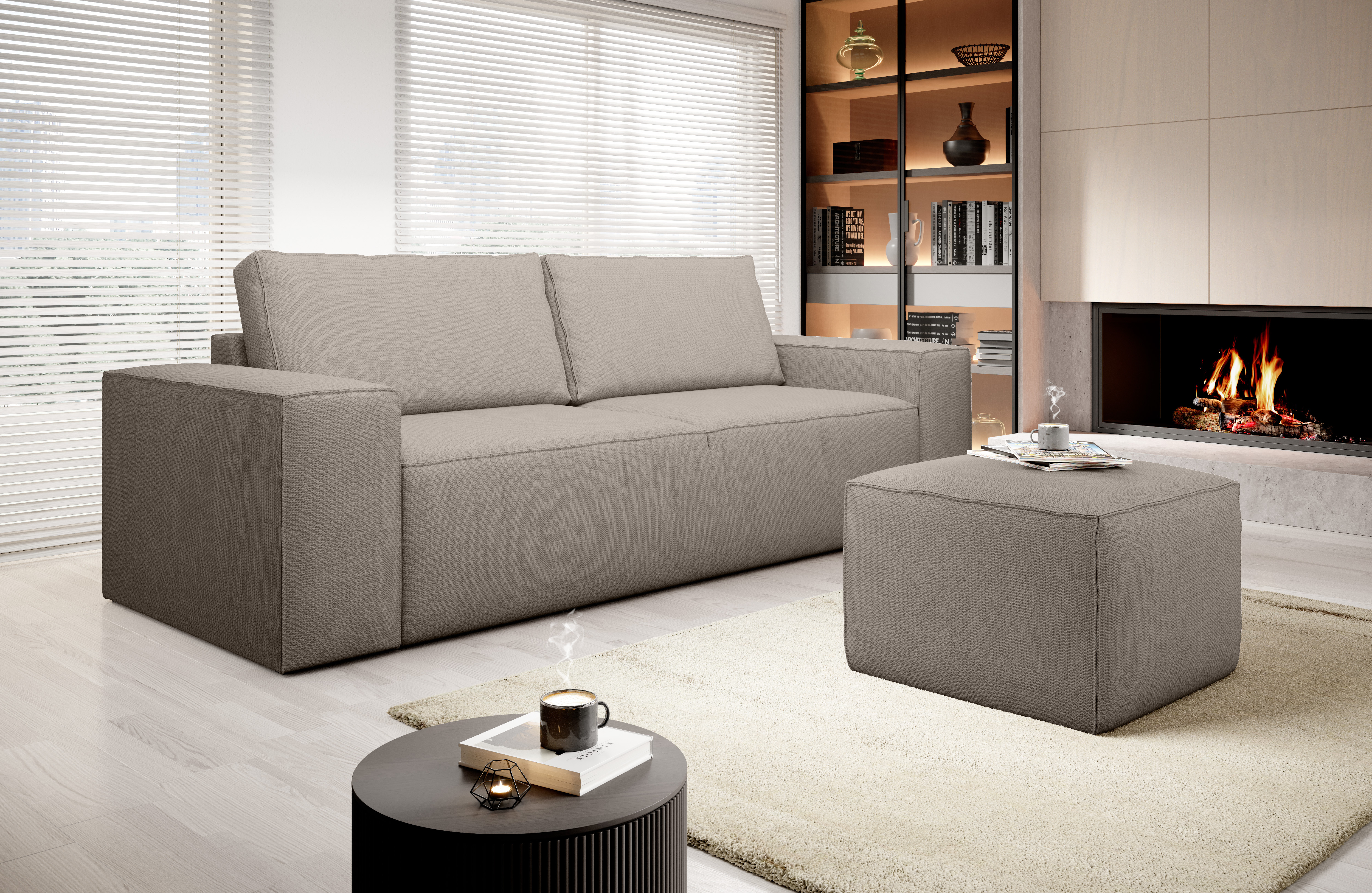 Pohovka Silla v provedení Poco 7 má sedáky vyplněné HR pěnou a zádové polštáře pěnou T25. Rozkladem vznikne ložná plocha 200x145 cm. K pohovce je možno dokoupit taburet Silla.