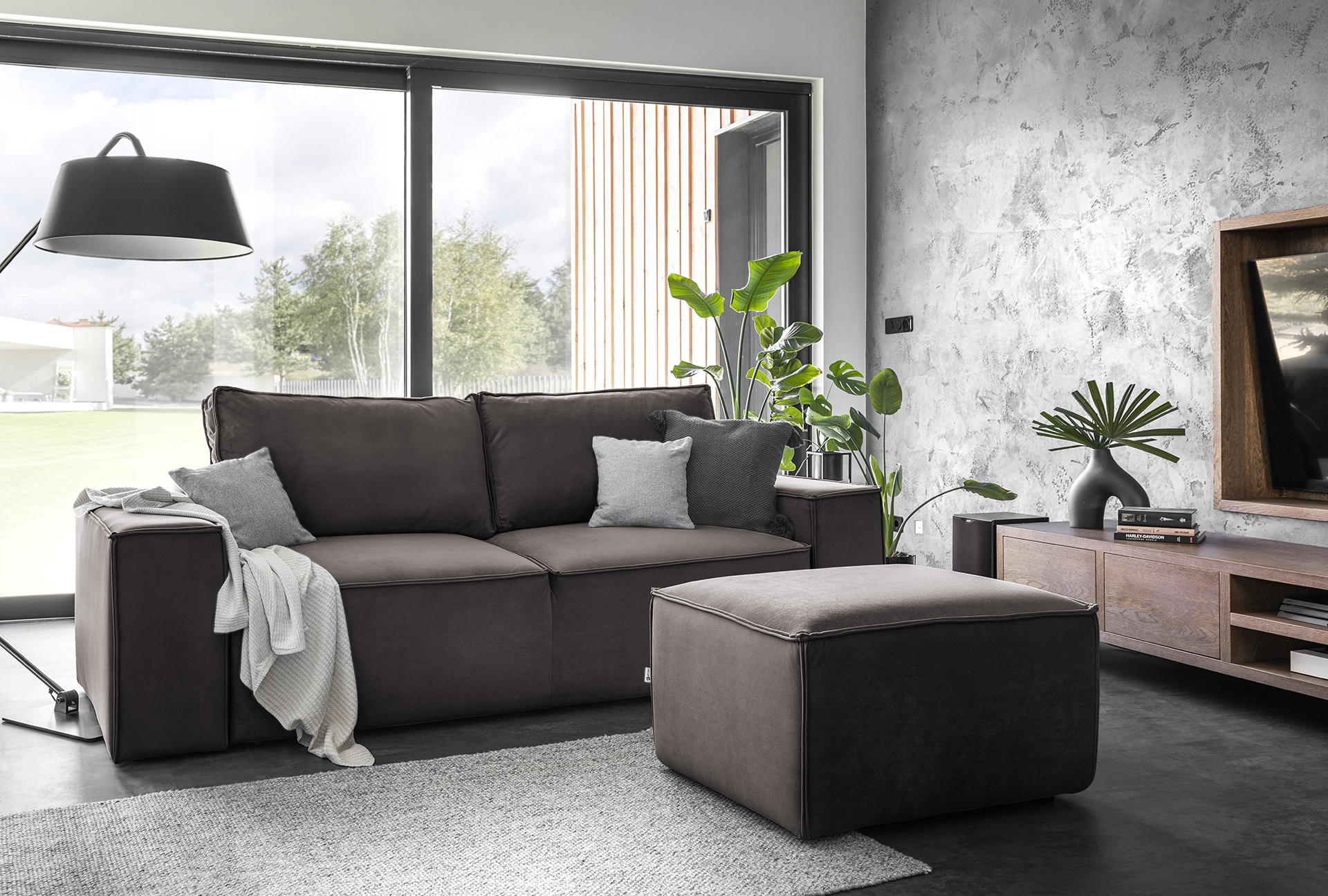 Pohovka Silla v provedení Velvetmat 22 má sedáky vyplněné HR pěnou a zádové polštáře pěnou T25. Rozkladem vznikne ložná plocha 200x145 cm. K pohovce je možno dokoupit taburet Silla.