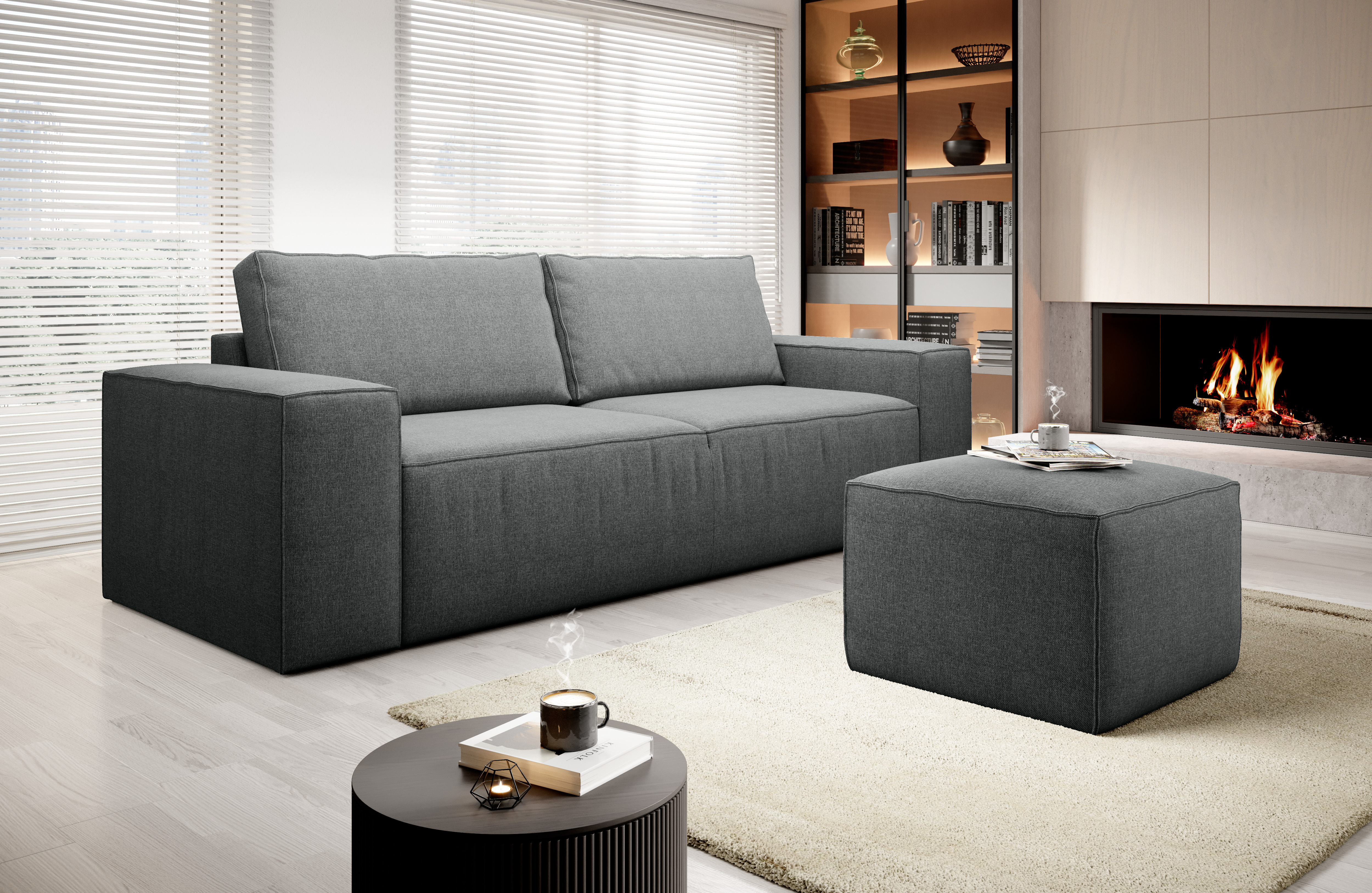 Pohovka Silla v provedení Vero 5 - příjemná na dotek a odolná látka, dostatečně pevná, připomíná lněné plátno, nevybledne. Pohovka má sedáky vyplněné HR pěnou a zádové polštáře pěnou T25. Rozkladem vznikne ložná plocha 200x145 cm. K pohovce je možno dokoupit taburet Silla.