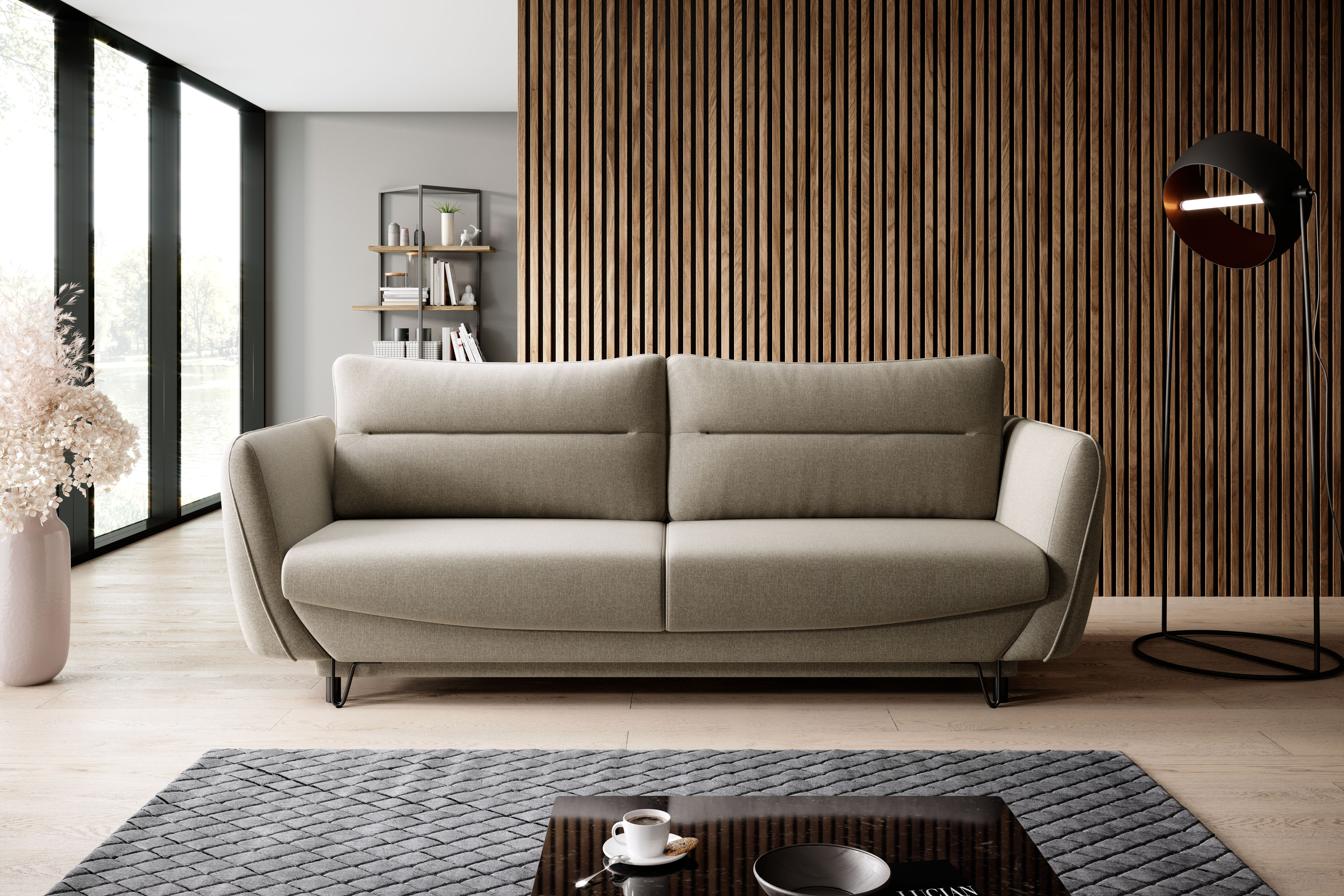 Elegantní čalouněná pohovka Silva v provedení Vero 18 - příjemná na dotek a odolná látka, dostatečně pevná, připomíná lněné plátno, nevybledne. Pohodlné opěradlo v podobě polštářů plněných pěnou T25 v kombinaci se sedáky s vysoce elastickou HR pěnou zajišťují pocit naprostého pohodlí. Rozkladem vznikne spací plocha 145x200 cm. Pohovka disponuje velkým úložným prostorem. Tato pohovka je vhodná do prostoru. Ocelové nožky v černé barvě a jsou vysoké 13 cm.