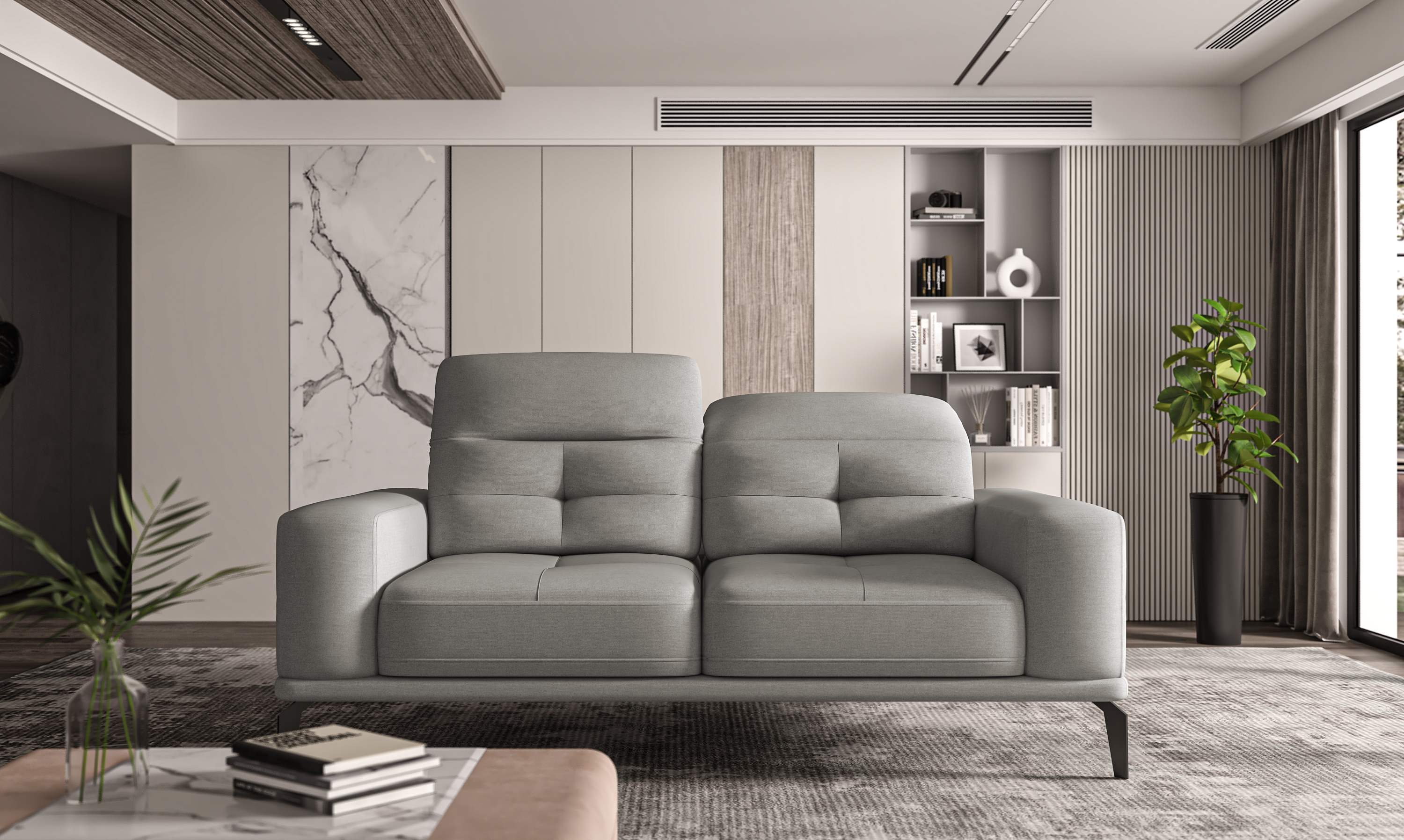 Pohovka Torrense v provedení Sola 18 - lesklý vzhled a jemná vazba látky, pevná a odolná proti oděru, nebledne bez stínového efektu po přejetí rukou. Kombinace HR pěny a pružin faliste ve spojení s vestavěným systém nastavení opěradla zajistí zajistí maximální pohodlí. Celek doplňují čtyři ocelové nohy s čistou, černou povrchovou úpravou. Nohy pohovky mají 17 cm.Pohovka není rozkládací a nedisponuje úložným prostorem.