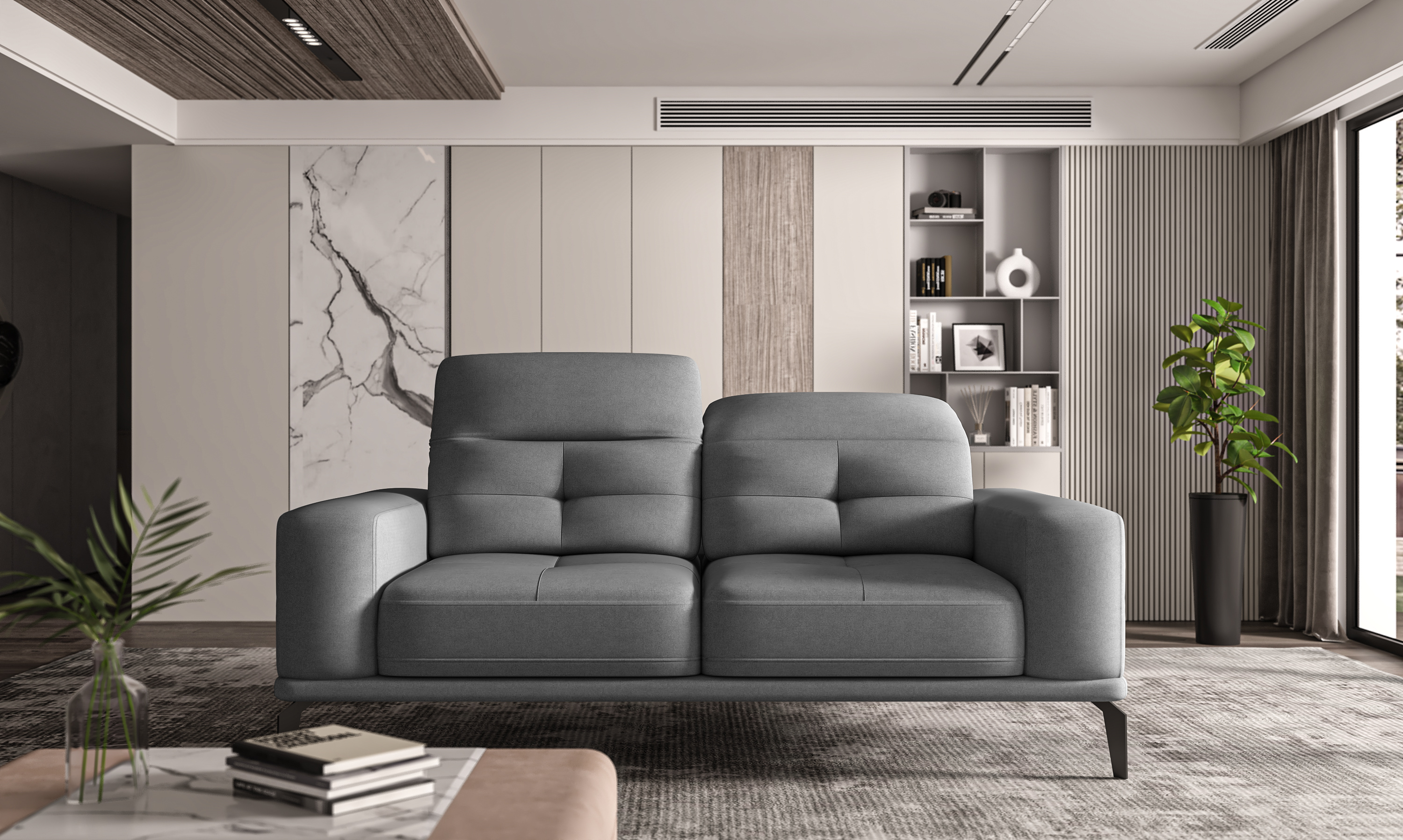 Pohovka Torrense v provedení Sola 6 - lesklý vzhled a jemná vazba látky, pevná a odolná proti oděru, nebledne bez stínového efektu po přejetí rukou. Kombinace HR pěny a pružin faliste ve spojení s vestavěným systém nastavení opěradla zajistí zajistí maximální pohodlí. Celek doplňují čtyři ocelové nohy s čistou, černou povrchovou úpravou. Nohy pohovky mají 17 cm.Pohovka není rozkládací a nedisponuje úložným prostorem.