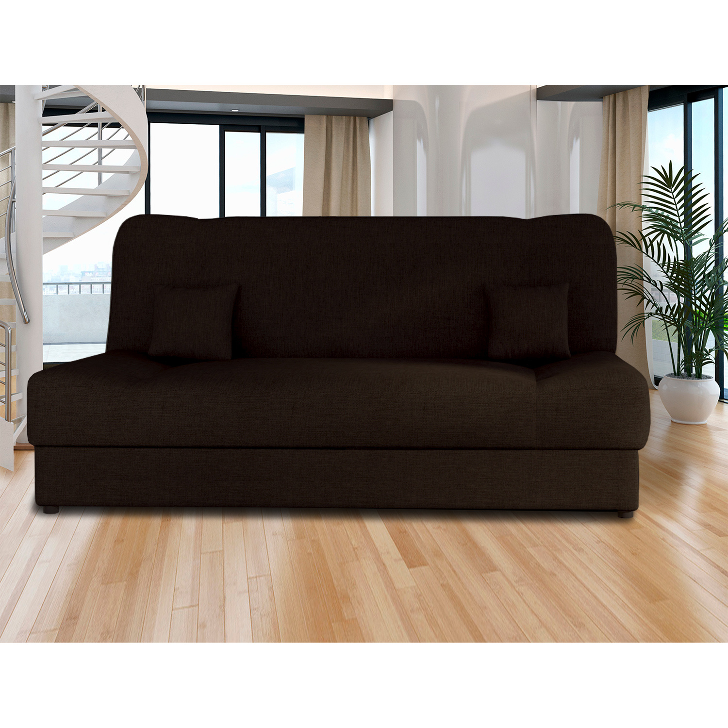Tato rozkládací pohovka s úložným prostorem má textilní potah v barevném provedení hnědá. Pohovka má jádro z vlnité pružiny. Výška sedu je 40 cm, hloubka sedu 55 cm. Rozměr rozložené pohovky je 190 × 120 cm. Způsob rozkládání KLIK-KLAK (postup uveden v návodu k montáži). Po složení do polohy k sedu upravte krycí látku v zadní části tak, aby zakryla rozkládací mechanizmus. Zboží dodáváme v demontu.