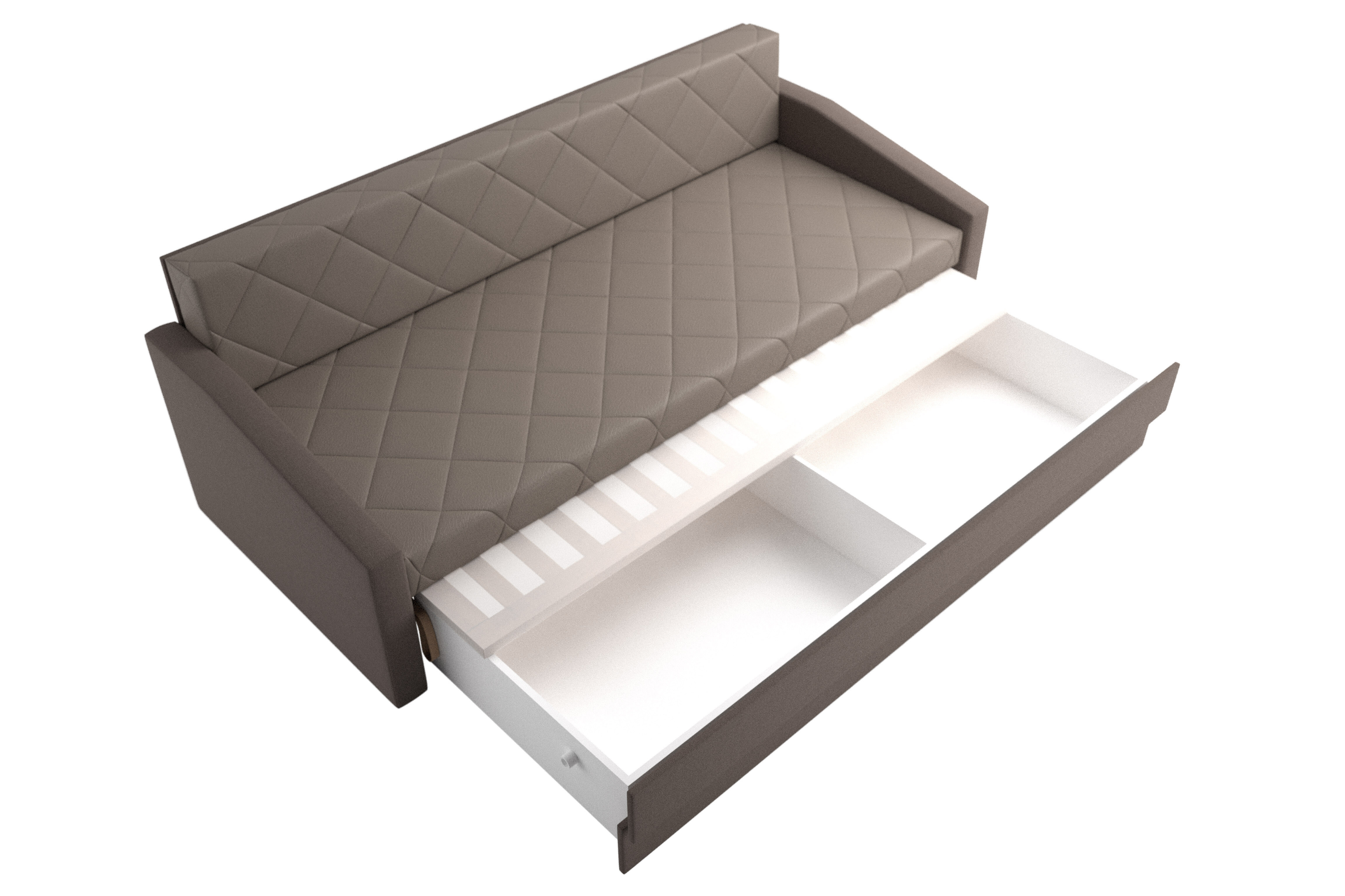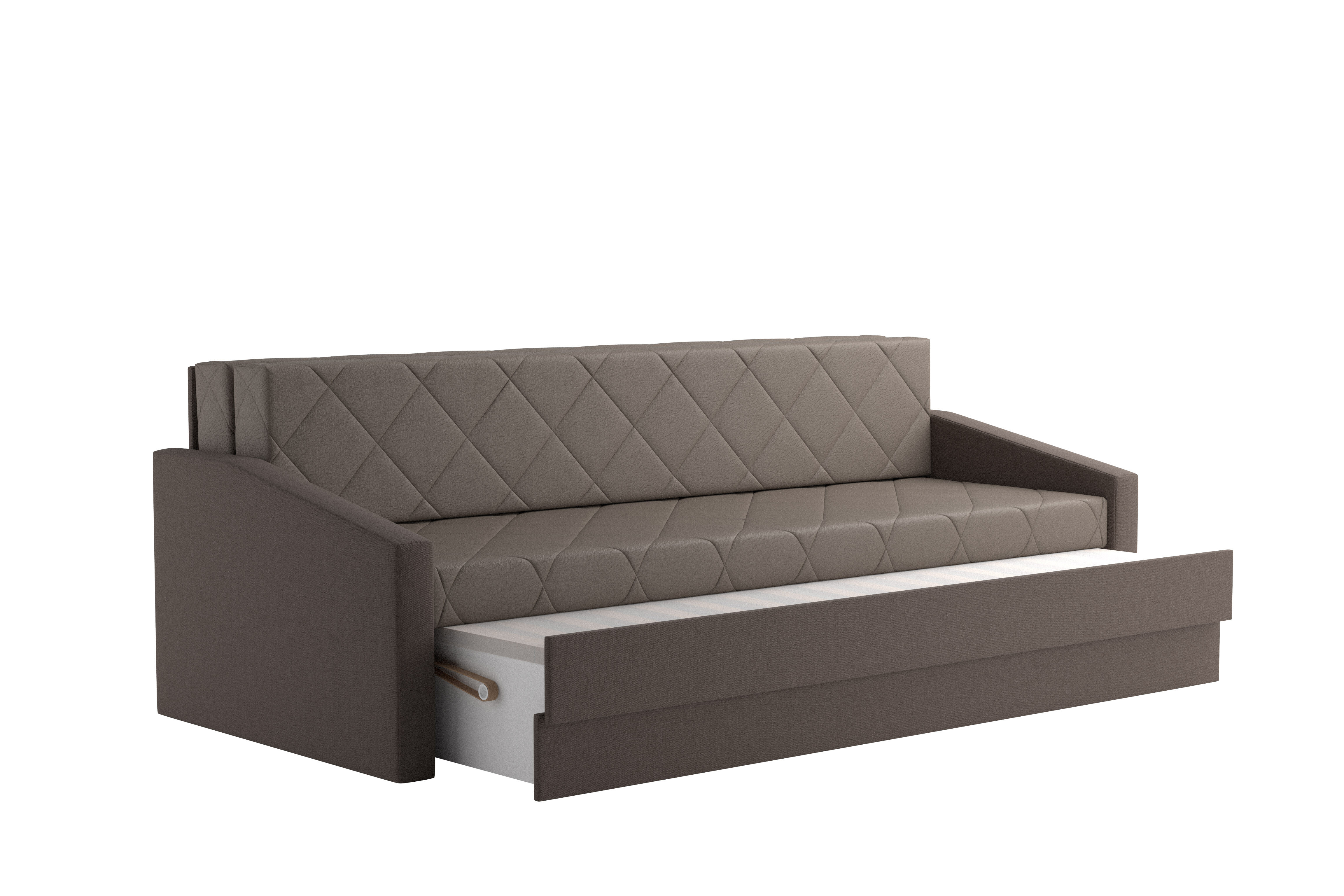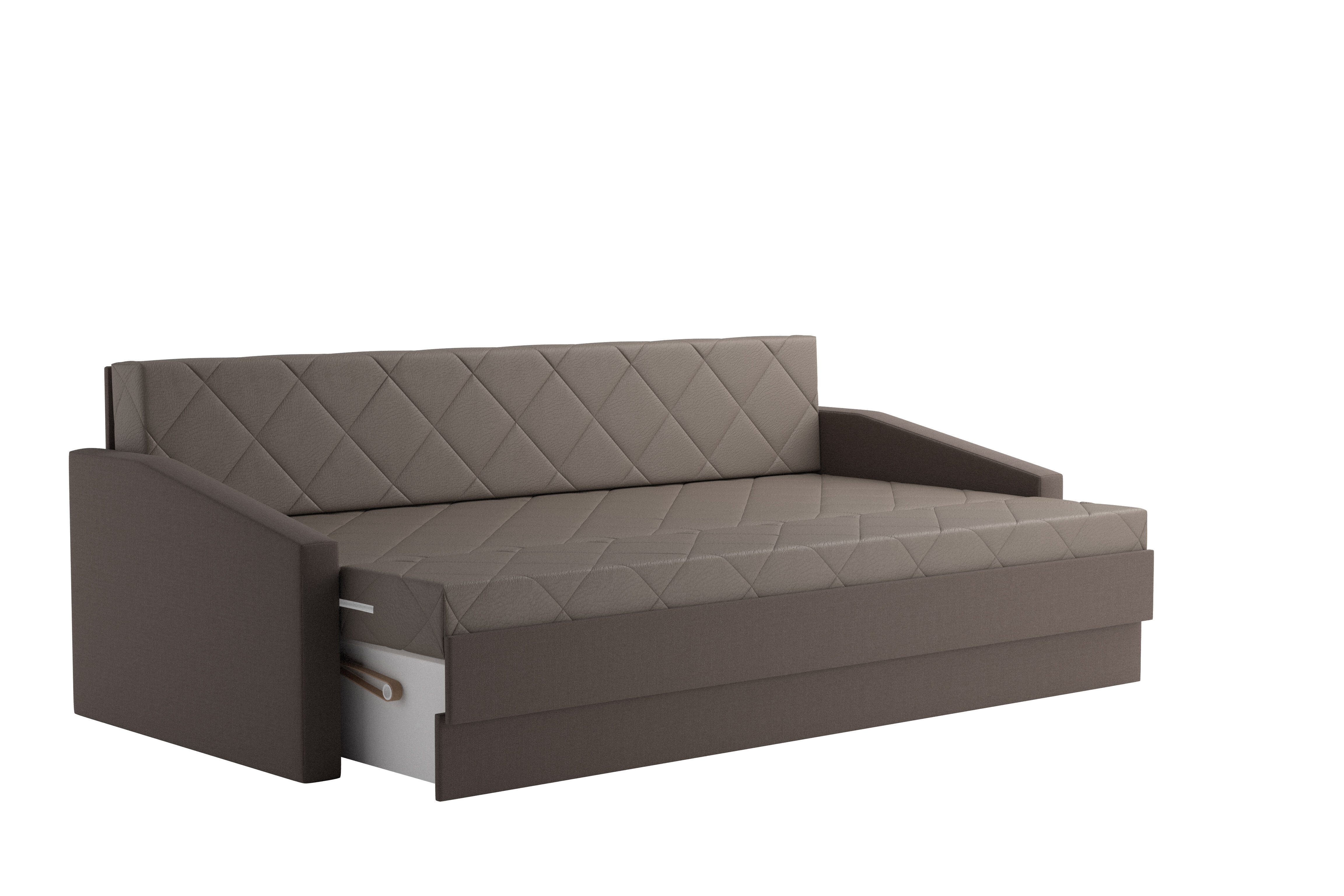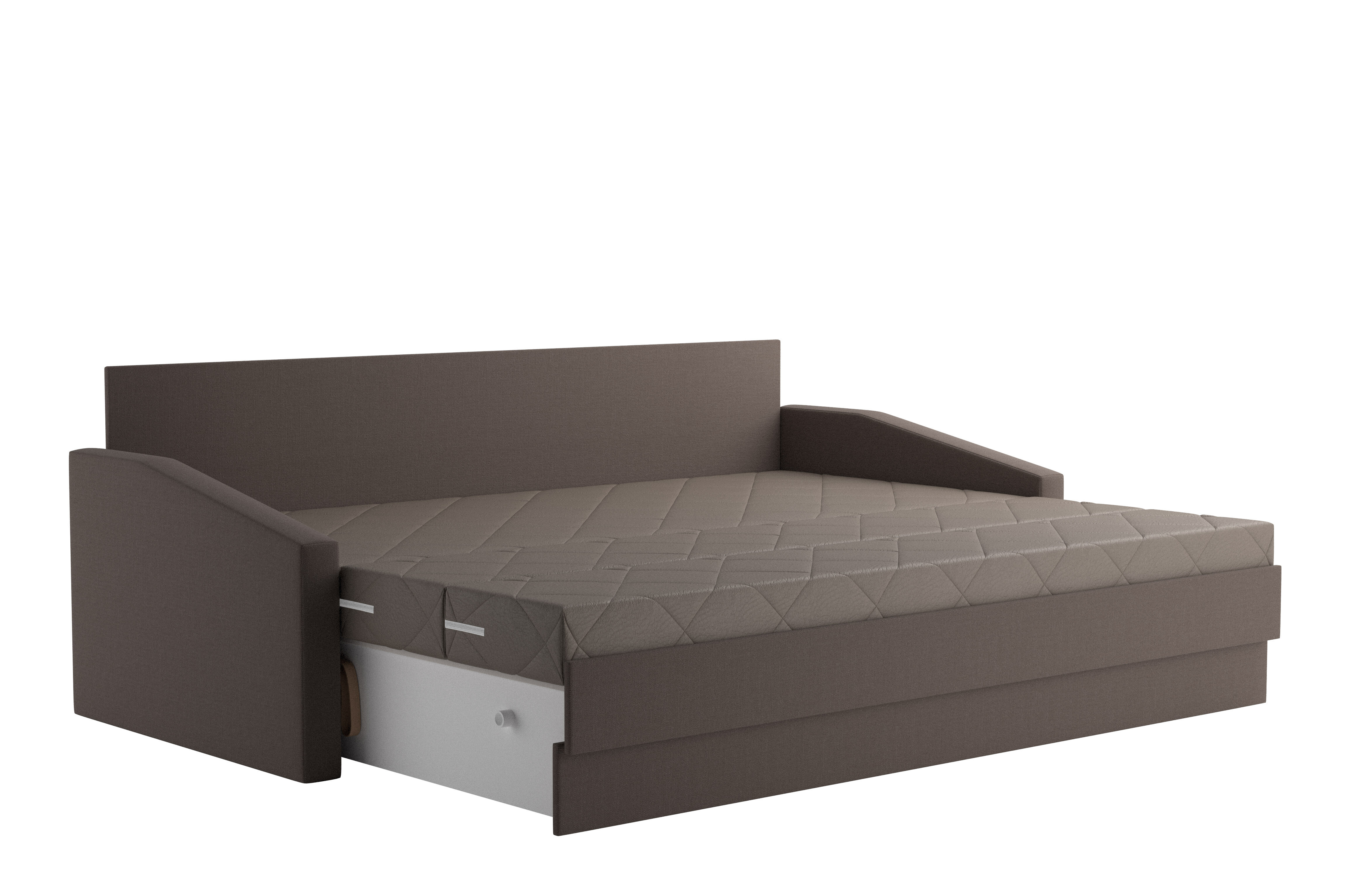Moderní rozkládací pohovka v barevném provedení Arte 5 / Largo 13 určená k sezení i každodennímu spaní. Pro účely spaní je vhodná pro 1-2 osoby, pro účely sezení je vhodná pro 3-4 osoby. Pohovka má nepolohovací lamelový rošt, na němž je umístěna volně ložená matrace Ivana, která je očalouněna v látce. Dvě zádové opěrky se po rozložení pohovky umístí na lamelový rošt a plní tak funkci druhé matrace. Úložný prostor je přístupný po vysunutí vozíku ve spodní části. Maximální doporučená nosnost 110 kg/os., výška lehací plochy bez matrace 31 cm, s matrací 46 cm. Možnost rozložení na 125x200 nebo na 160x200 cm. Výška nožiček 0,5 cm.
